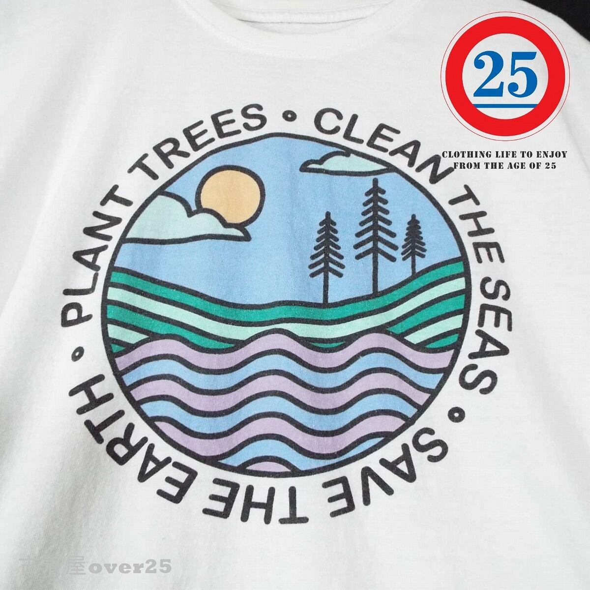 ・ラウンドロゴに綺麗な風景をモチーフにした白Tです。