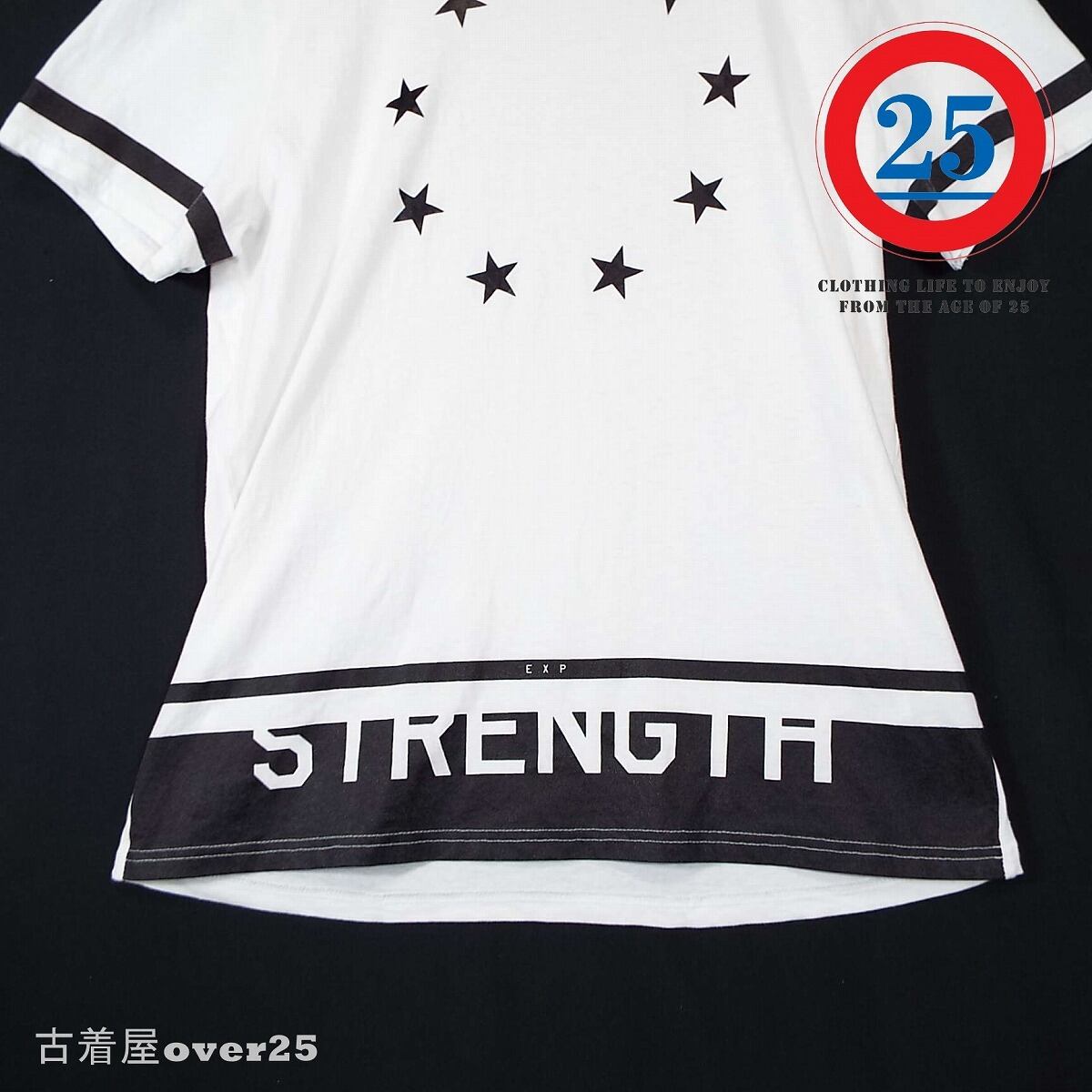 Lサイズ|EXPRESS EXP STRENGTH STAR 星 裾ロゴ クルーネック 半袖 カレッジTシャツ ホワイト【湘南倉庫】USメンズ古着 白Tシャツ ビッグサイズ