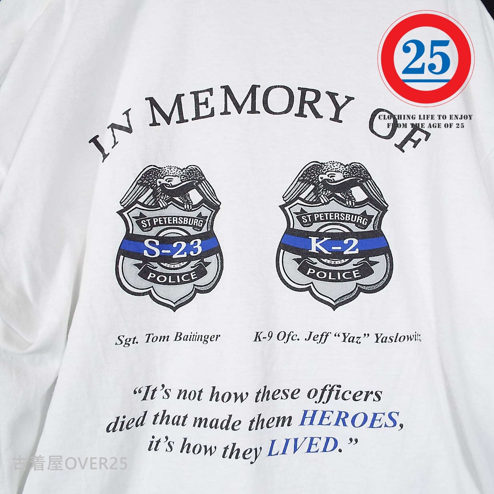 ・フロリダ州 セント・ピーターズバーグ警察署のポリスバッチがデザインされたレアTシャツ。