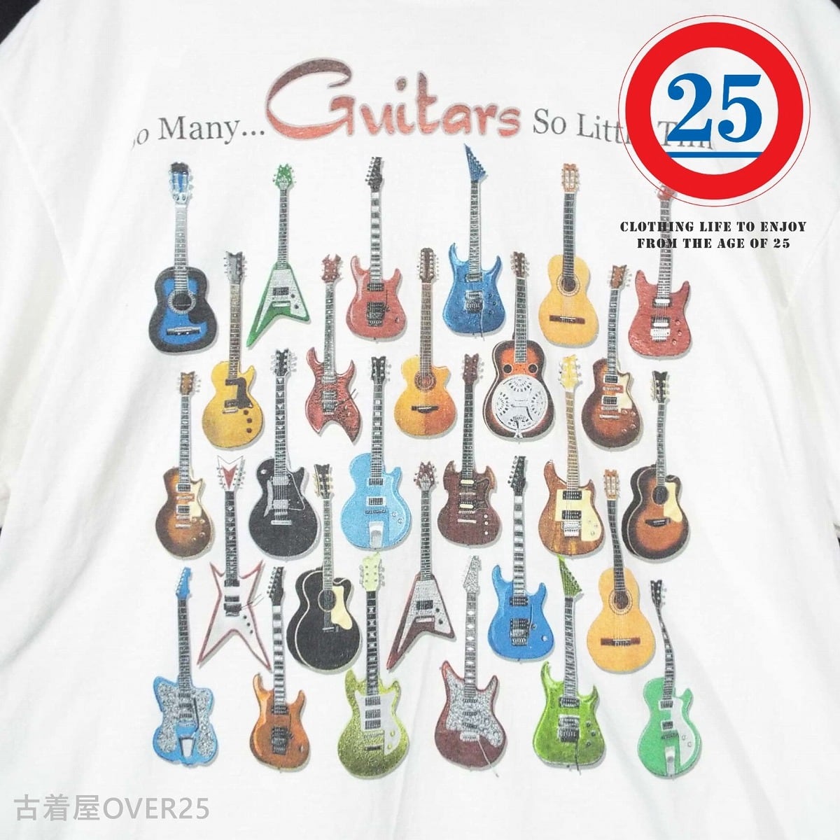 【SOLD OUT】INFINITE SO MANY GUITARS SO LITTLE TIME エレキギター guitar クルーネック 半袖Tシャツ XLサイズ オフホワイト【湘南倉庫】USメンズ古着 白T ビッグサイズTシャツ