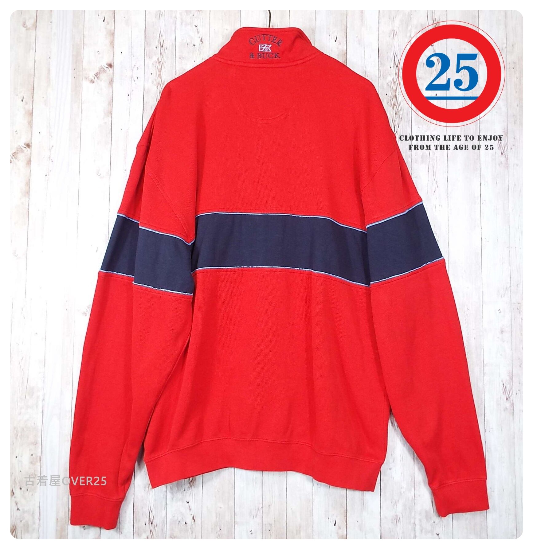 Lサイズ|インド製 CUTTER&BUCK Windstar Wind Spirit Cruise ヨット クルーズ船 ハーフジップ ジャージ レッド・ネイビー赤紺【湘南倉庫】USメンズ古着 ビッグサイズ ゴルフウエア