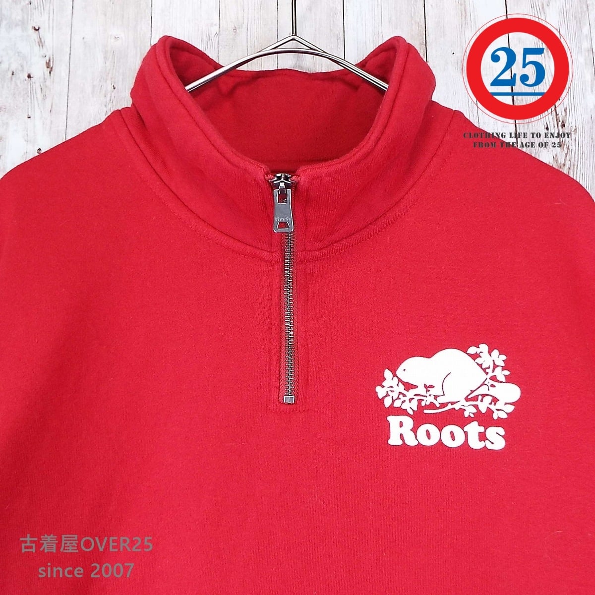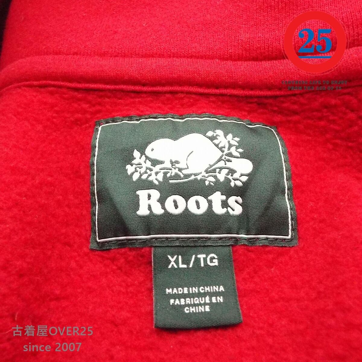 【ビッグサイズ】ROOTS ルーツ キャラクター ビーバー フロッキープリント カナダ国旗 ハーフジップ スウェット トレーナー XLサイズ レッド赤【仙台倉庫】USメンズ古着