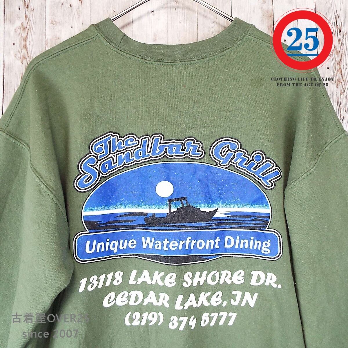 GILDAN The Sandbar Grill デカプリント アーチロゴ 3段 クルーネック スウェット Mサイズ グリーン緑【仙台倉庫】USメンズ古着