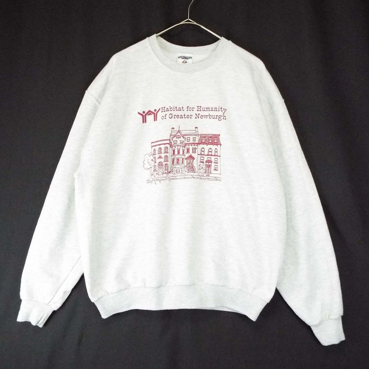 【肩幅56cm】【ダイヤマーク 90-00年代】メキシコ製 JERZEES Habitat for Humanity of Greater Newburgh グラフィック プリント クルーネック スウェット トレーナー Lサイズ 霜降りライトグレー灰【仙台倉庫】US古着 トレーナー男子女子