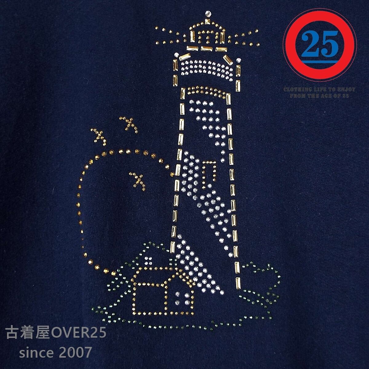 XLサイズ|GILDAN ULTRA BLEND ラインストーン 灯台 ダブルカラー 長袖スウェットトレーナー ダークネイビー濃紺【湘南倉庫】USメンズ古着