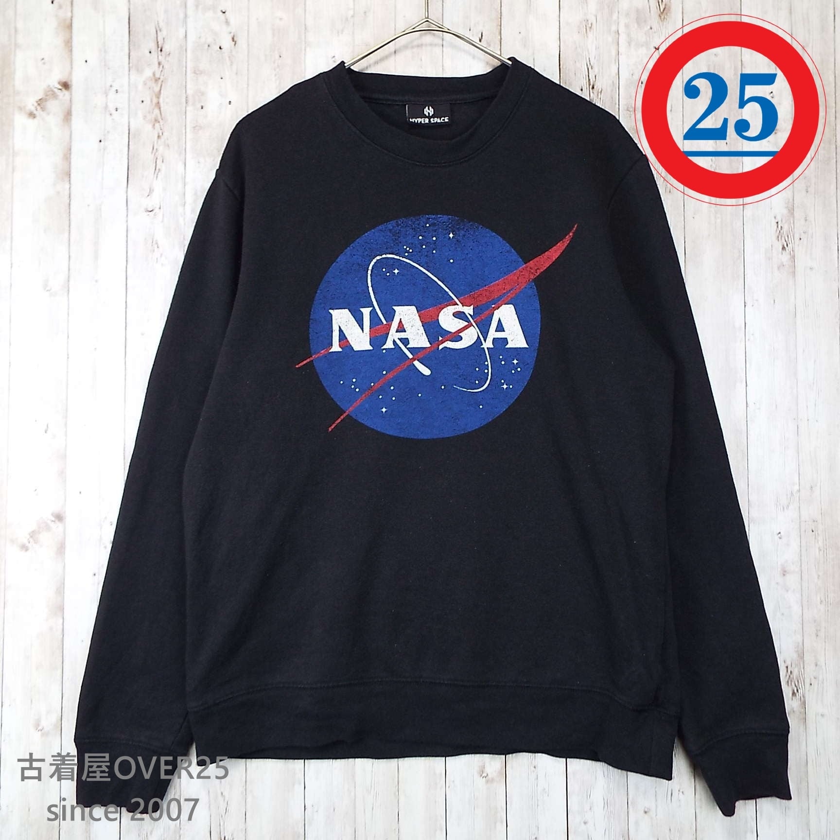 HYPER SPACE NASA ビッグプリント 長袖スウェットシャツ トレーナー Mサイズ ブラック黒【仙台倉庫】USメンズ古着 4912345017239