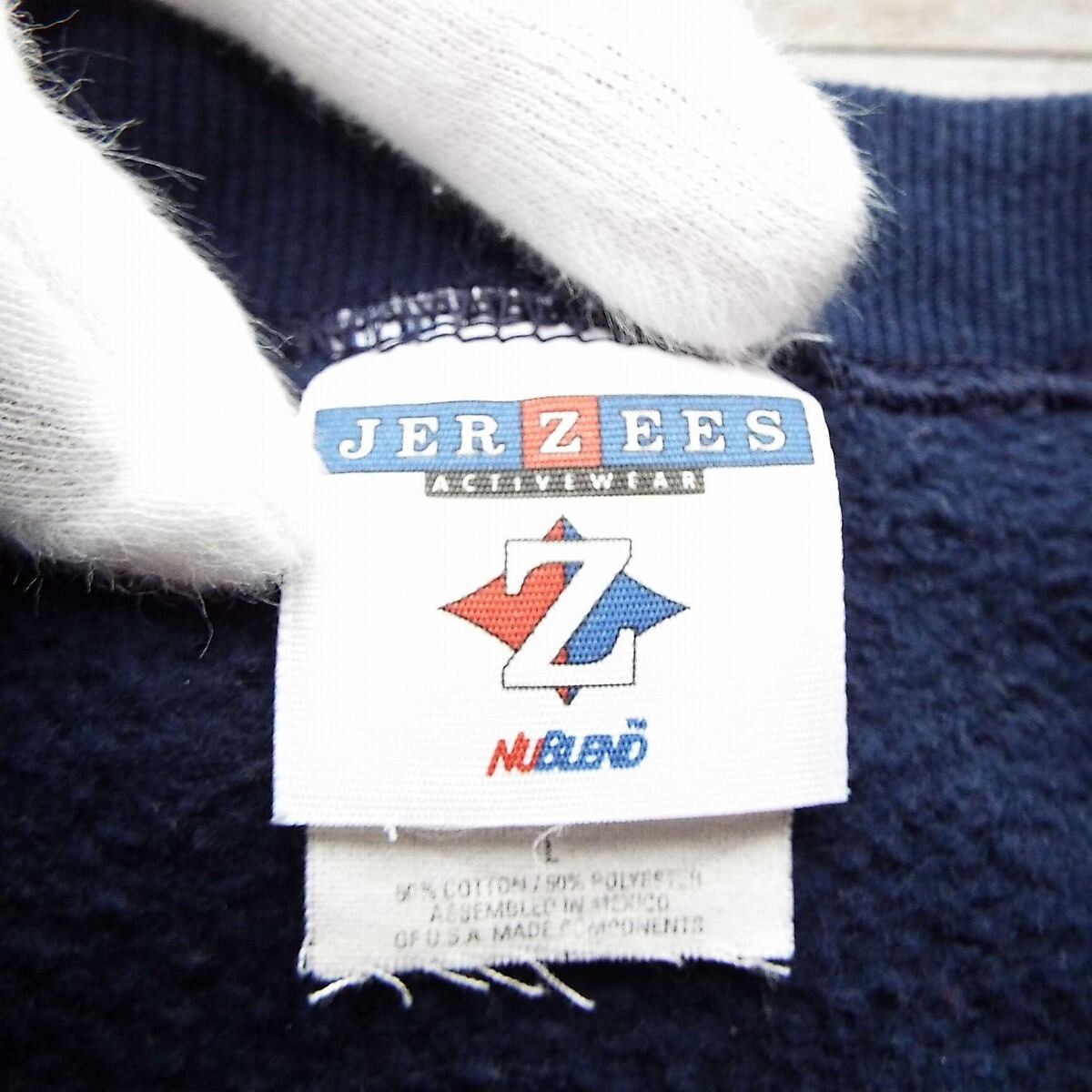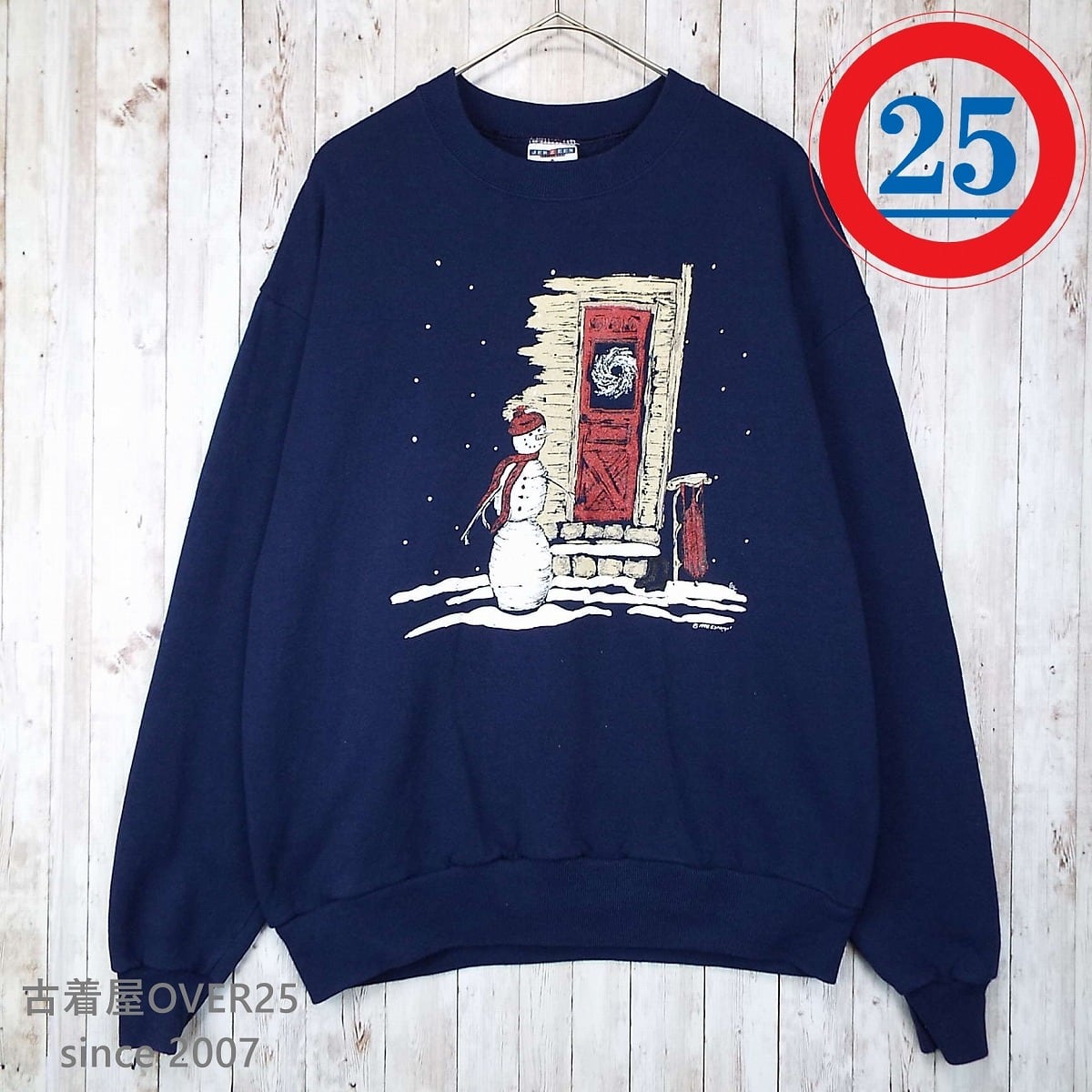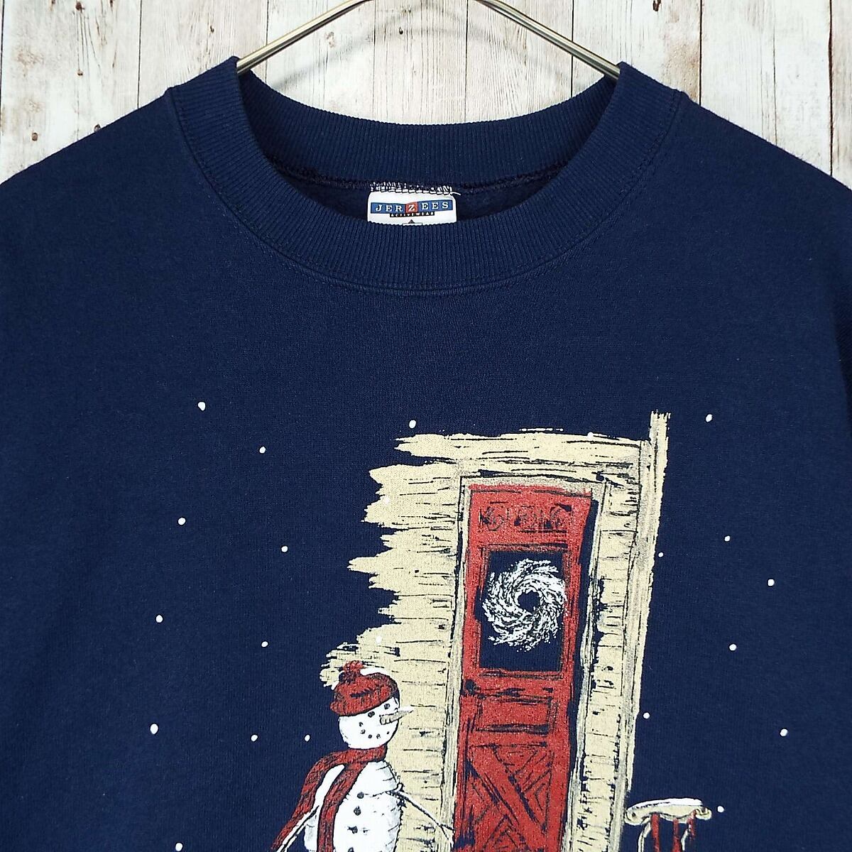90年代ヴィンテージ Lサイズ|JERZEES ジャージーズ クリスマス 雪だるま 立体ロゴ 長袖スウェット トレーナー ネイビー紺【湘南倉庫】USメンズ古着 4912345017901