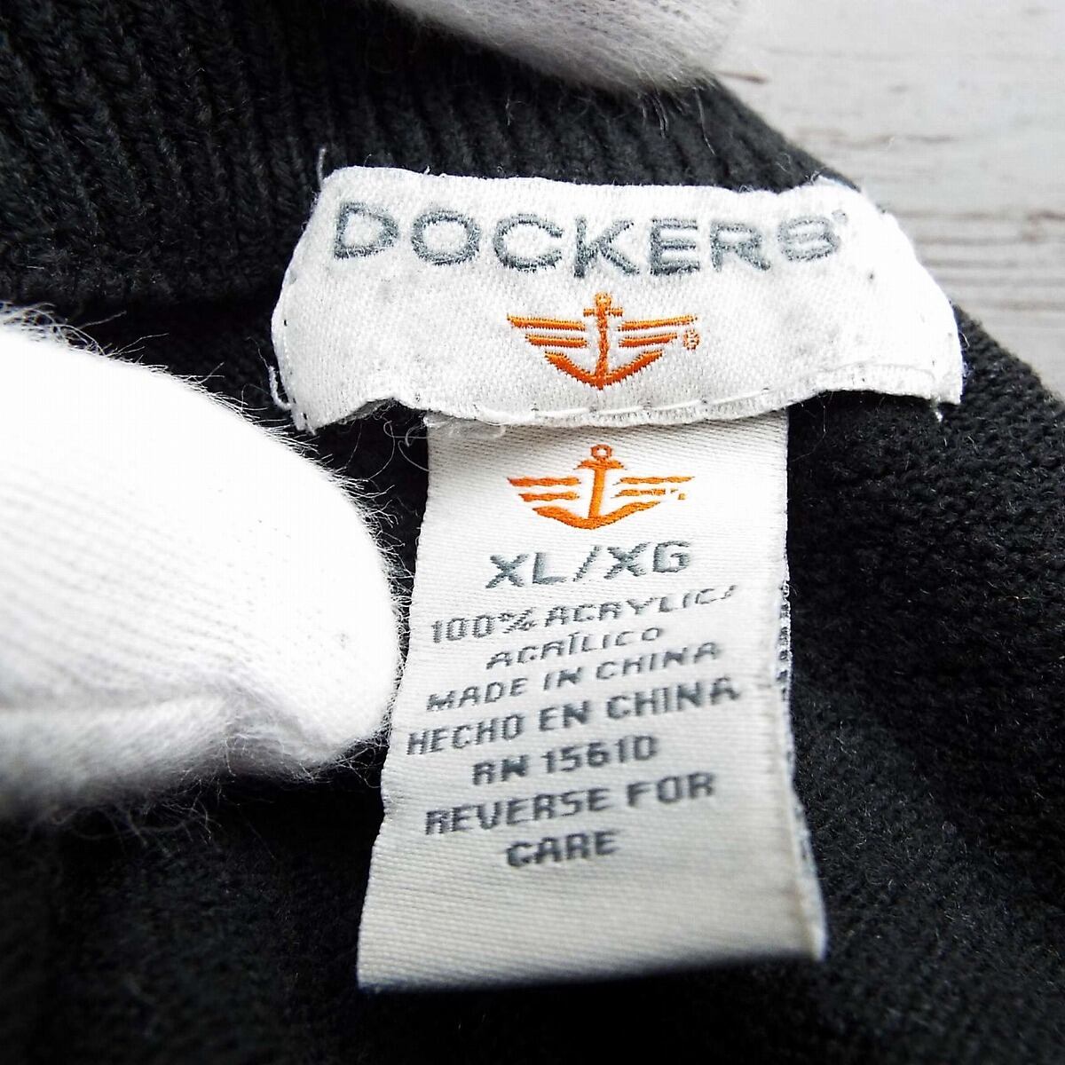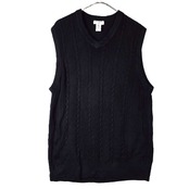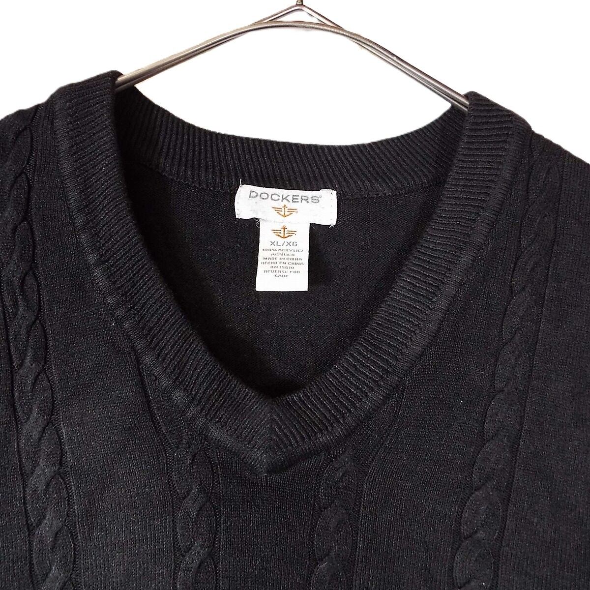 【肩幅39.5cm】DOCKERS アクリル ケーブル編み Vネック ニットベスト ブラック黒 XLサイズ 細身スタイル【湘南倉庫】USメンズ古着 4912345010704