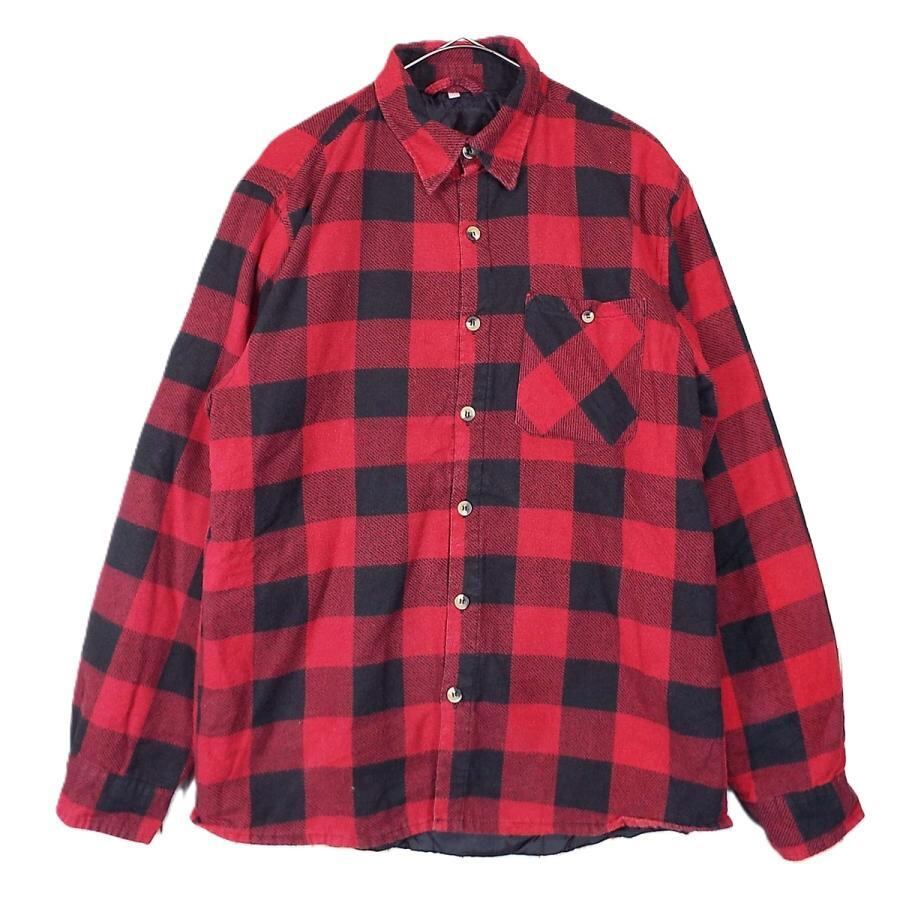 【ヨーロッパ古着】ZEEMAN 裏キルティング バッファローチェック 肉厚 長袖ネルシャツ 長袖シャツ レッド・ブラック赤黒 レディースLサイズ(メンズM)【湘南倉庫】12364336