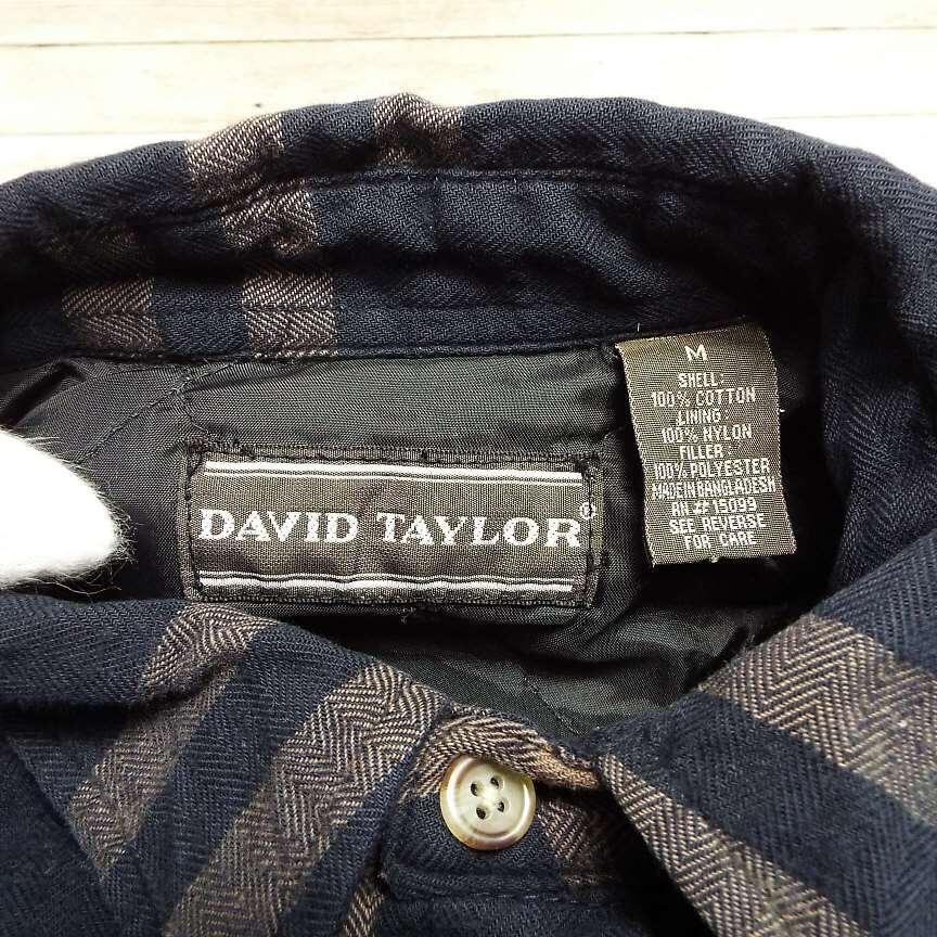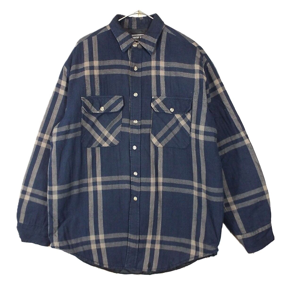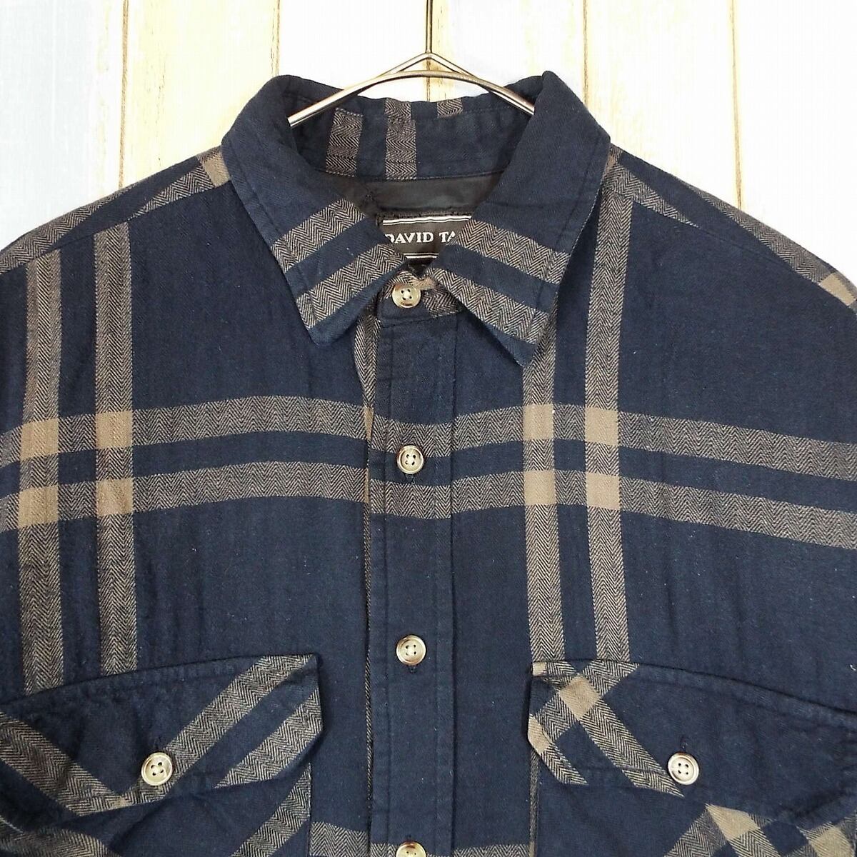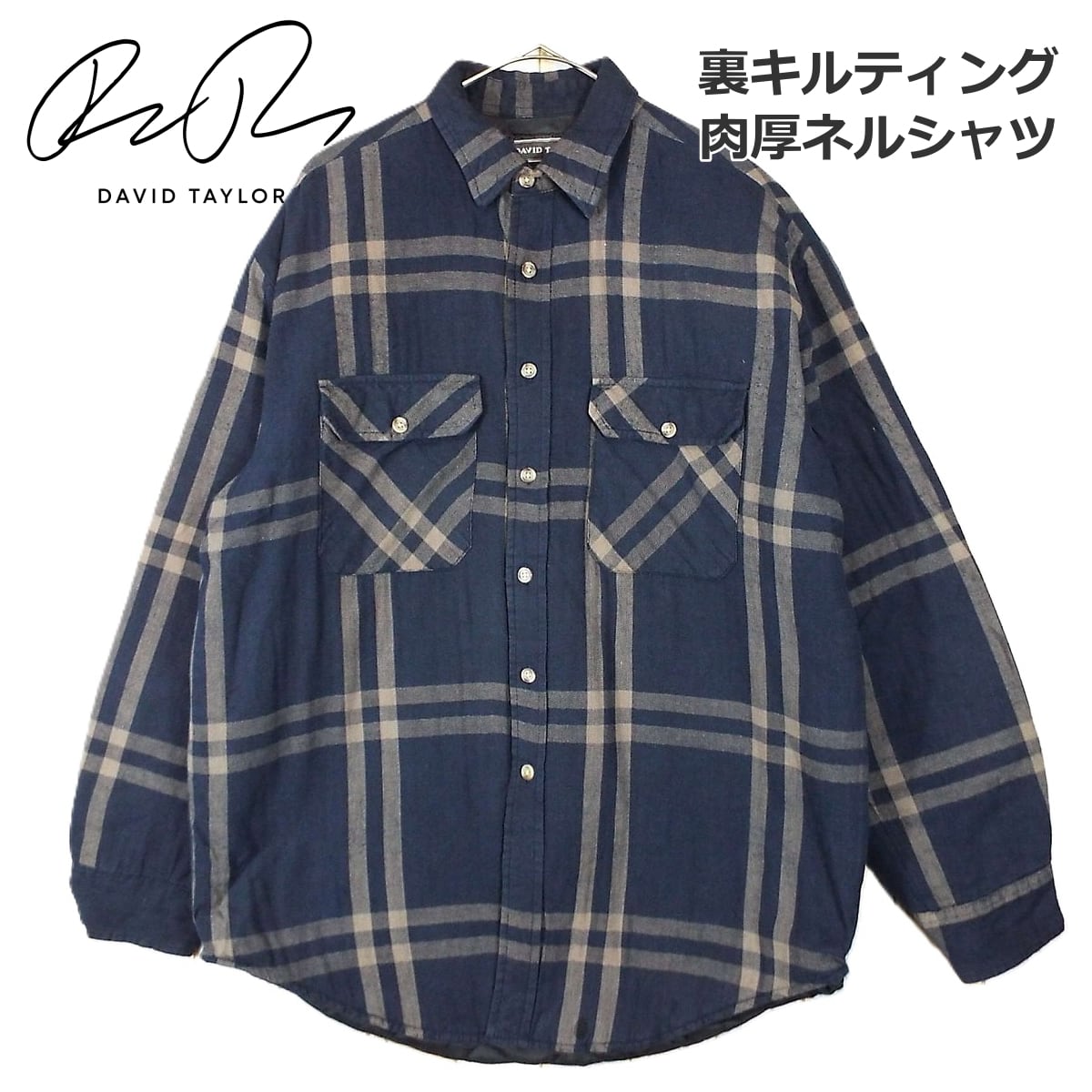 【裏キルティングの肉厚ネルシャツ】DAVID TATLOR チェック柄 ヘビーネル 長袖シャツ ダークネイビー濃紺 Mサイズ【湘南倉庫】USメンズ古着 12364534
