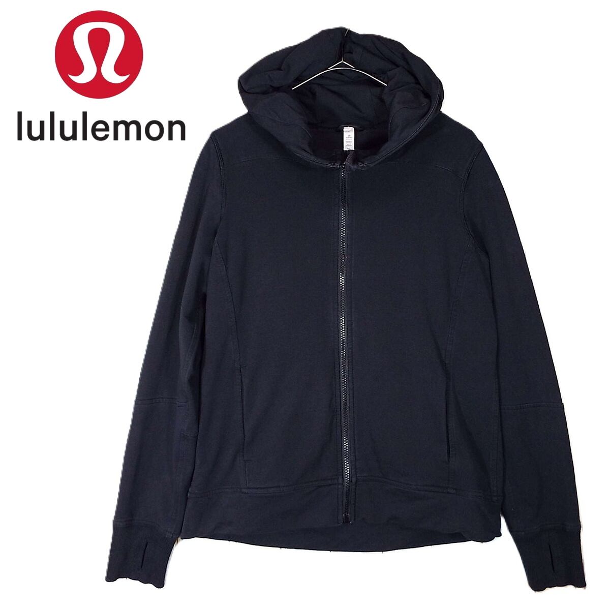 【高級ヨガウエア】Lululemon ルルレモン ジップアップ サムホール 長袖パーカー サイズ:4 ブラック黒【湘南倉庫】USレディース古着 16001633