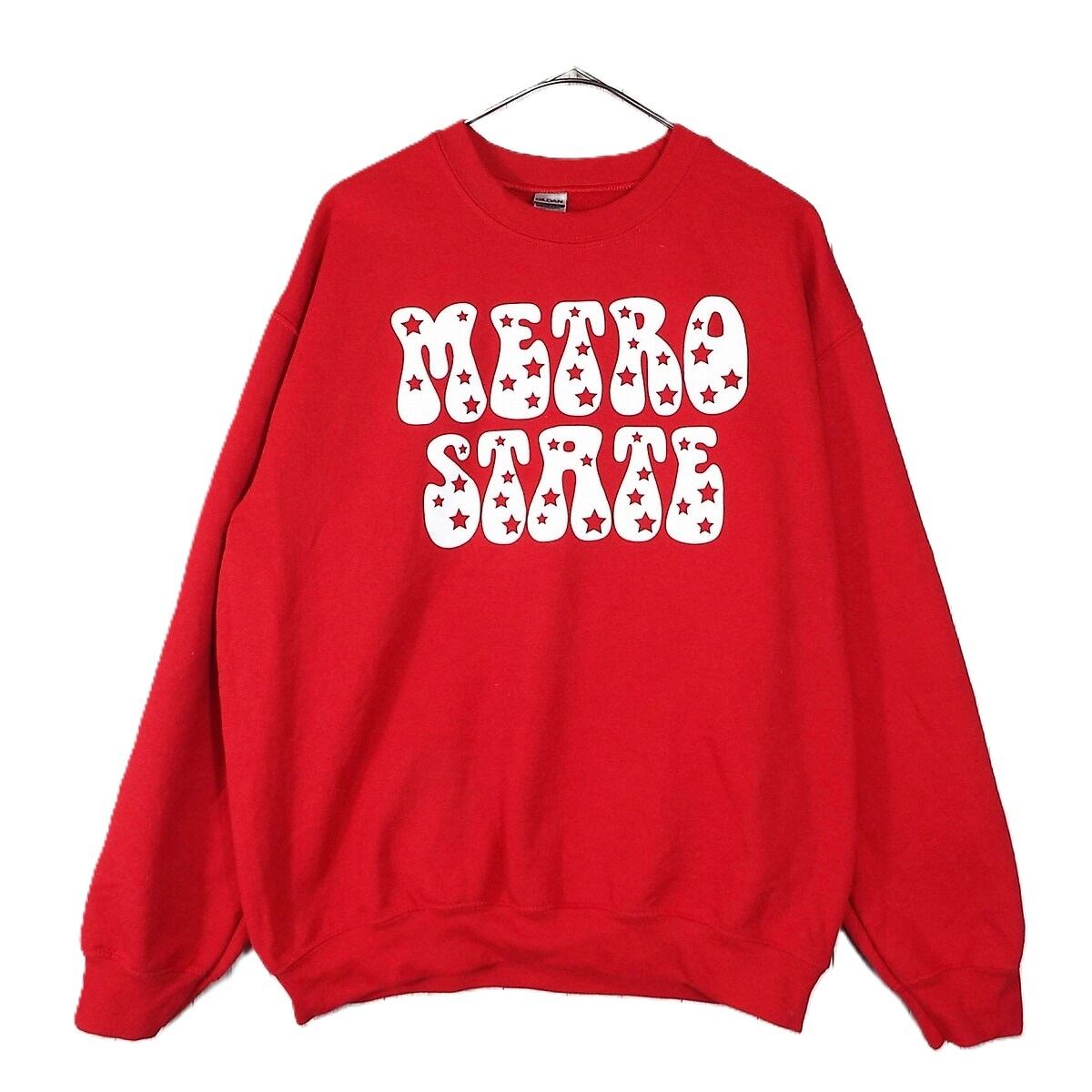 【カレッジロゴ】GILDAN ギルダン METRO STATE メトロポリタン州立大学 長袖スウエットトレーナー Mサイズ(肩幅54cm) レッド赤【湘南倉庫】USメンズ古着 16001336