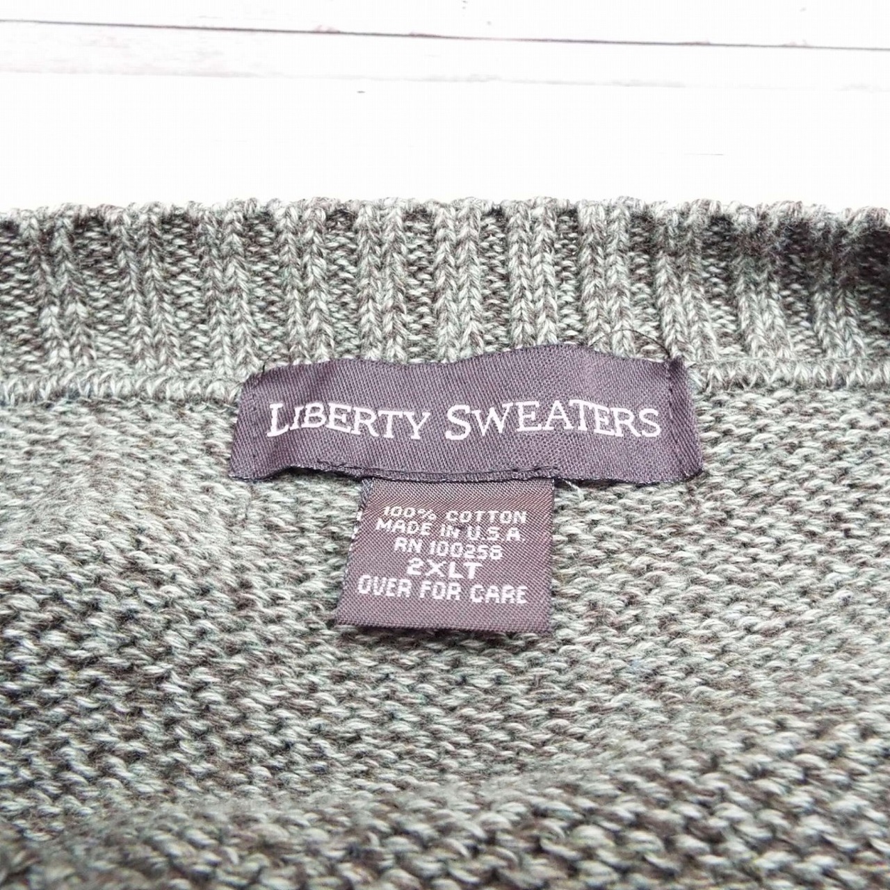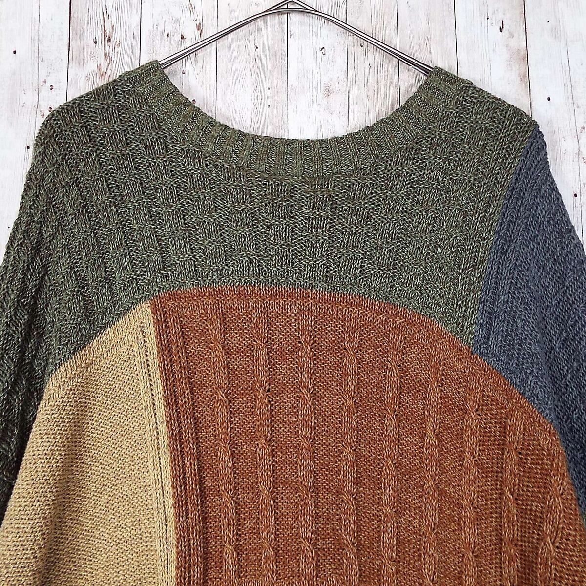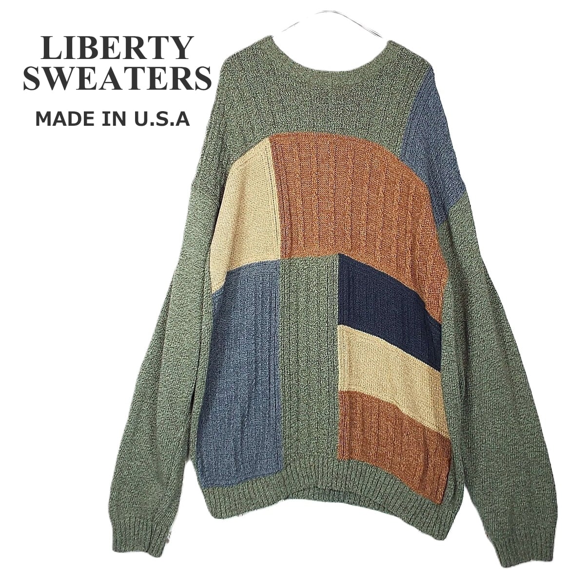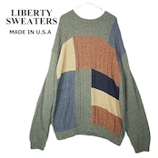 【MADE IN USA】LIBERTY SWEATERS 柄系 クルーネック 長袖ニットセーター 2XLT(XXL)肩幅67cm グリーンブラウン緑茶【湘南倉庫】アメリカ製 USメンズ古着 オーバーシルエット ビッグサイズ 16000018
