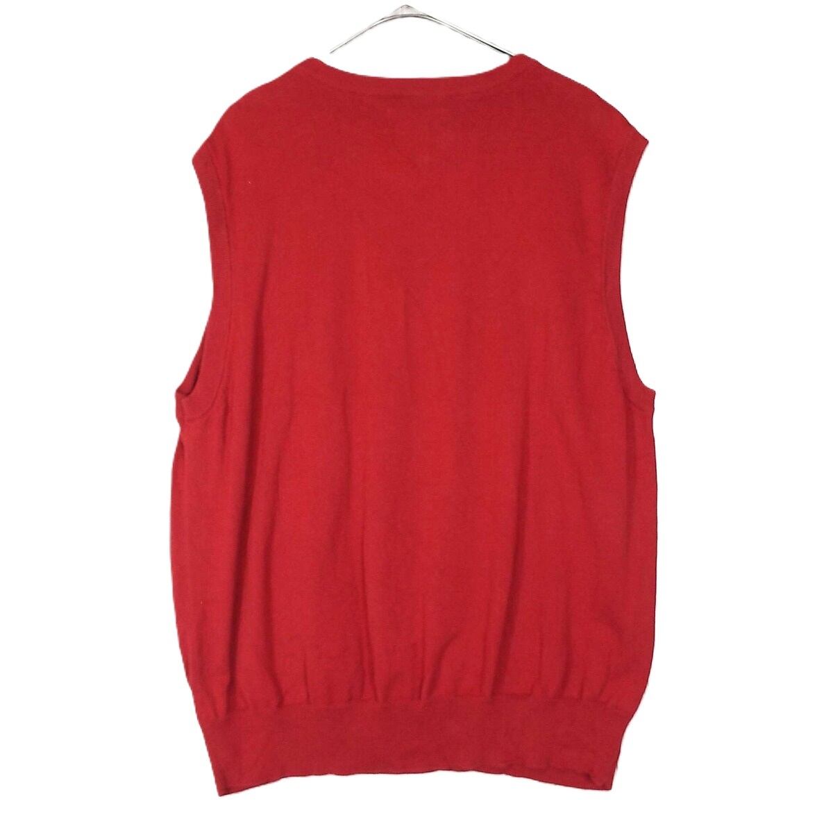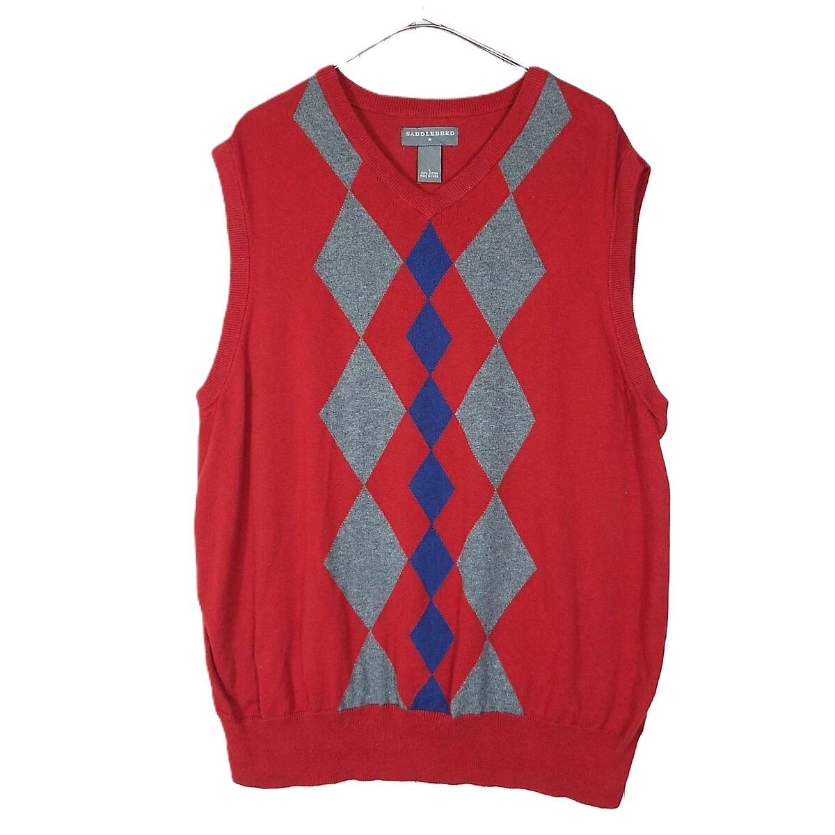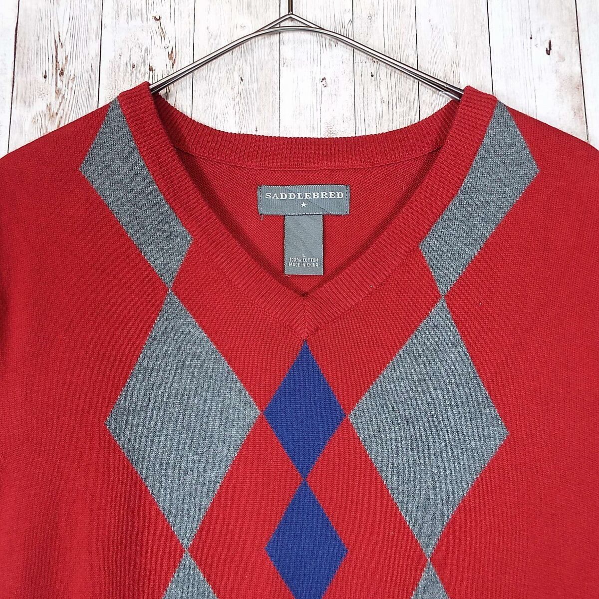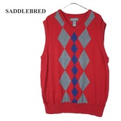 【アーガイル柄】SADDLEBRED サドルブレッド ハイゲージ Vネック ニットベスト Lサイズ(肩幅44cm) ワインレッド赤【湘南倉庫】USメンズ古着 ゴルフウエア