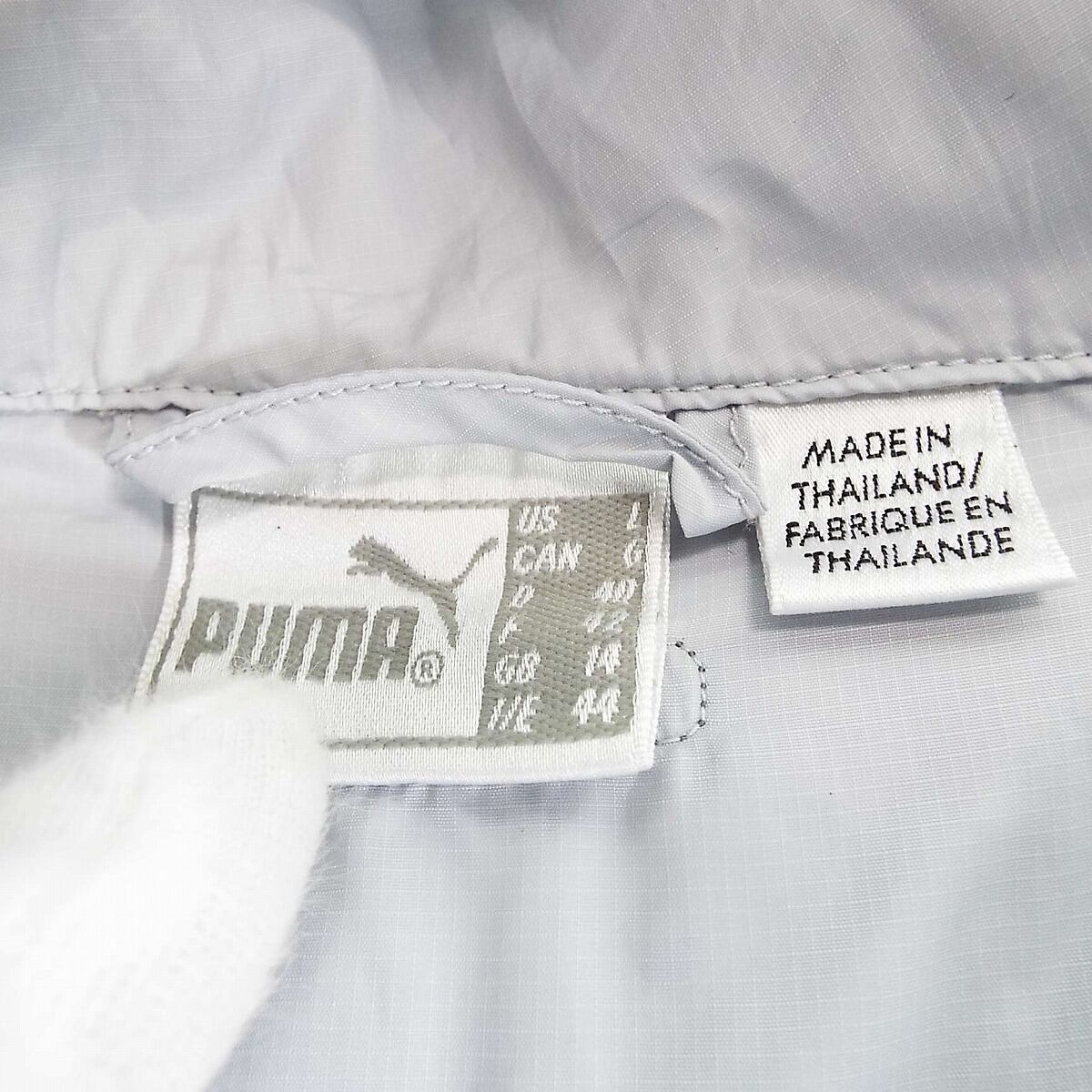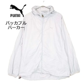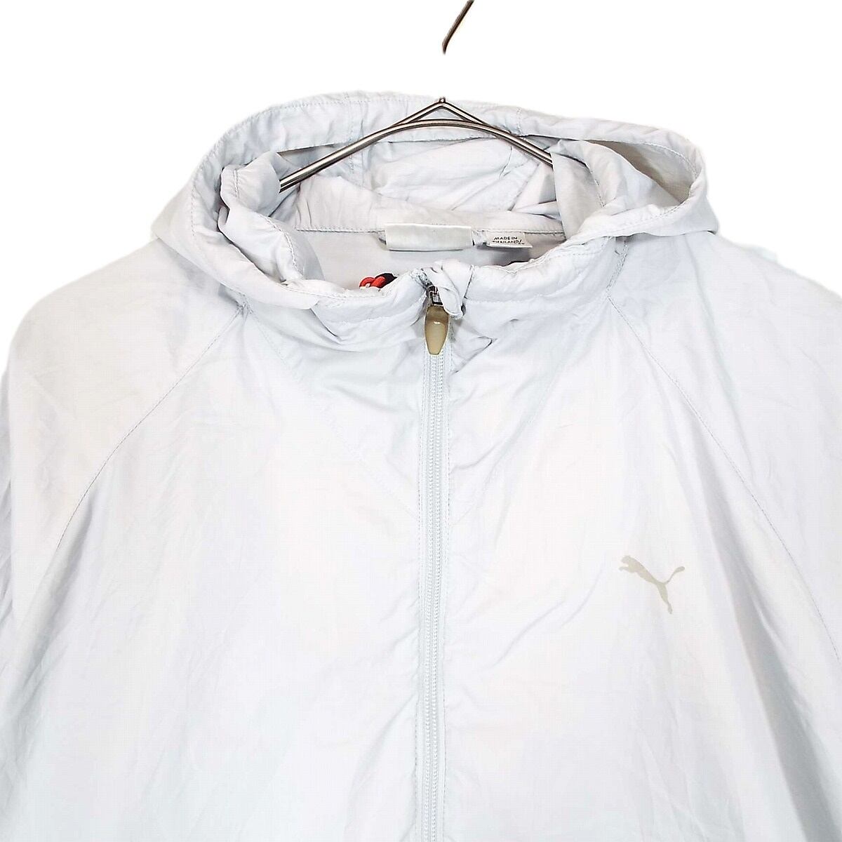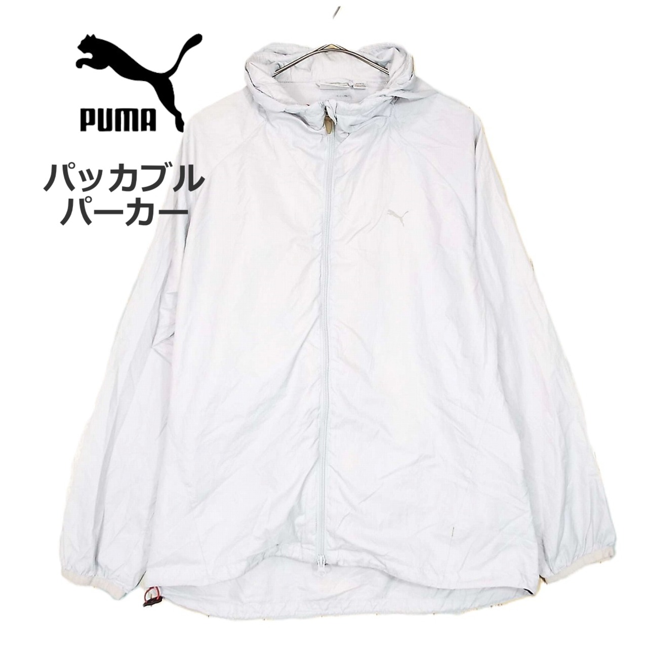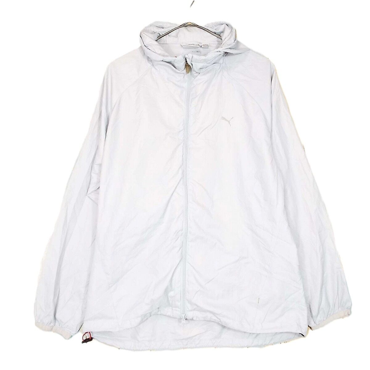 【パッカブル】PUMA プーマ ZIP フルジップアップ ラグラン袖 長袖ウインドブレーカ ジャケット Lサイズ(身幅51cm)ライトグレー Lサイズ【湘南倉庫】USメンズ古着 16000087