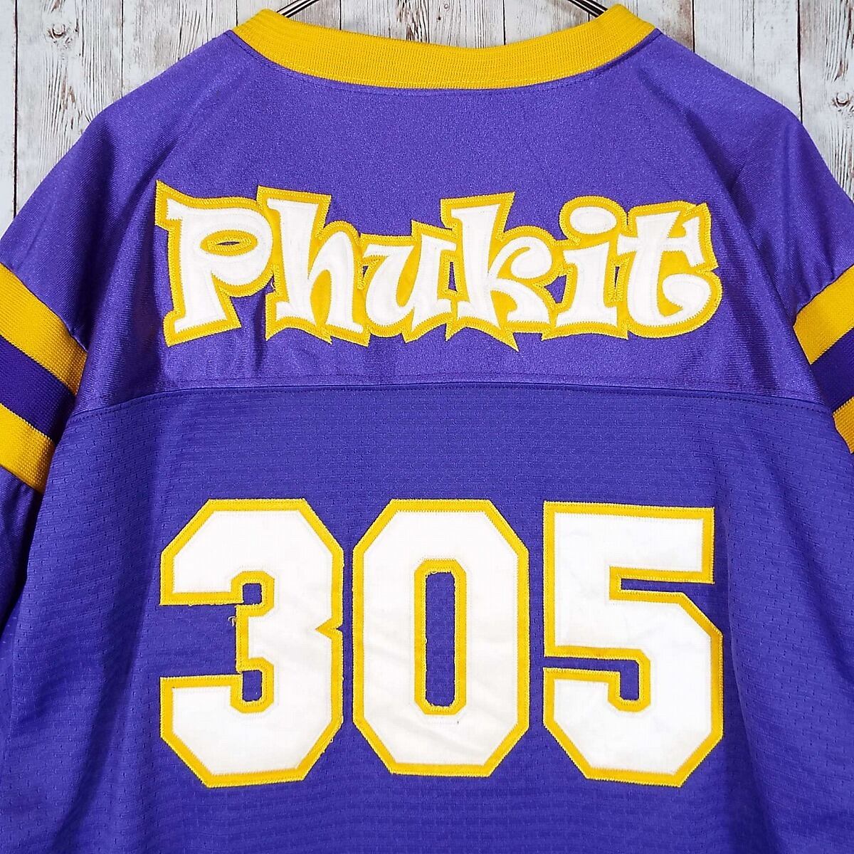 【コレクターズアイテム】Phukit 305ナンバリング 立体刺繍ロゴ ジャージ素材 ゲームシャツ パープル紫 Lサイズ【湘南倉庫】USメンズ古着 16001008 ホッケーシャツ