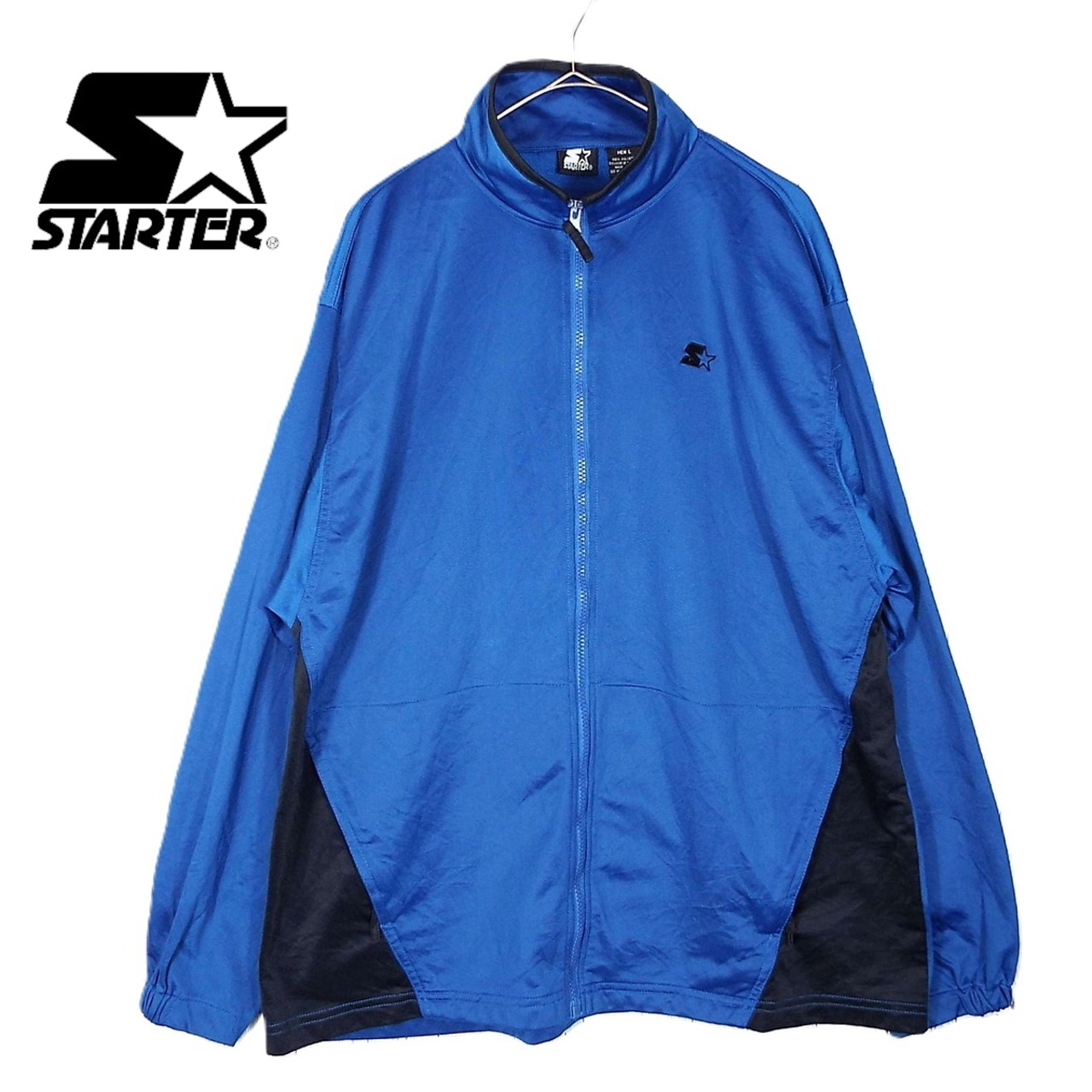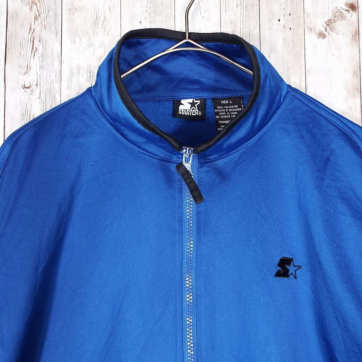 【肩幅55cm】STARTER スターター ワンポイントロゴ刺繍 長袖トラックジャケット トレーニングジャージ Lサイズ ブルーブラック ポリエステル100%【湘南倉庫】USメンズ古着 17000208