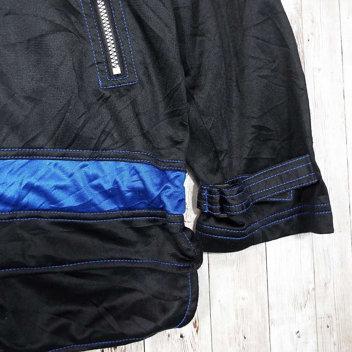 ビッグロゴジャケット チャンピオン Champion 裾紐 長袖トラックジャケット ブラックブルー黒青 Sサイズ【湘南倉庫】USメンズ古着 16001411