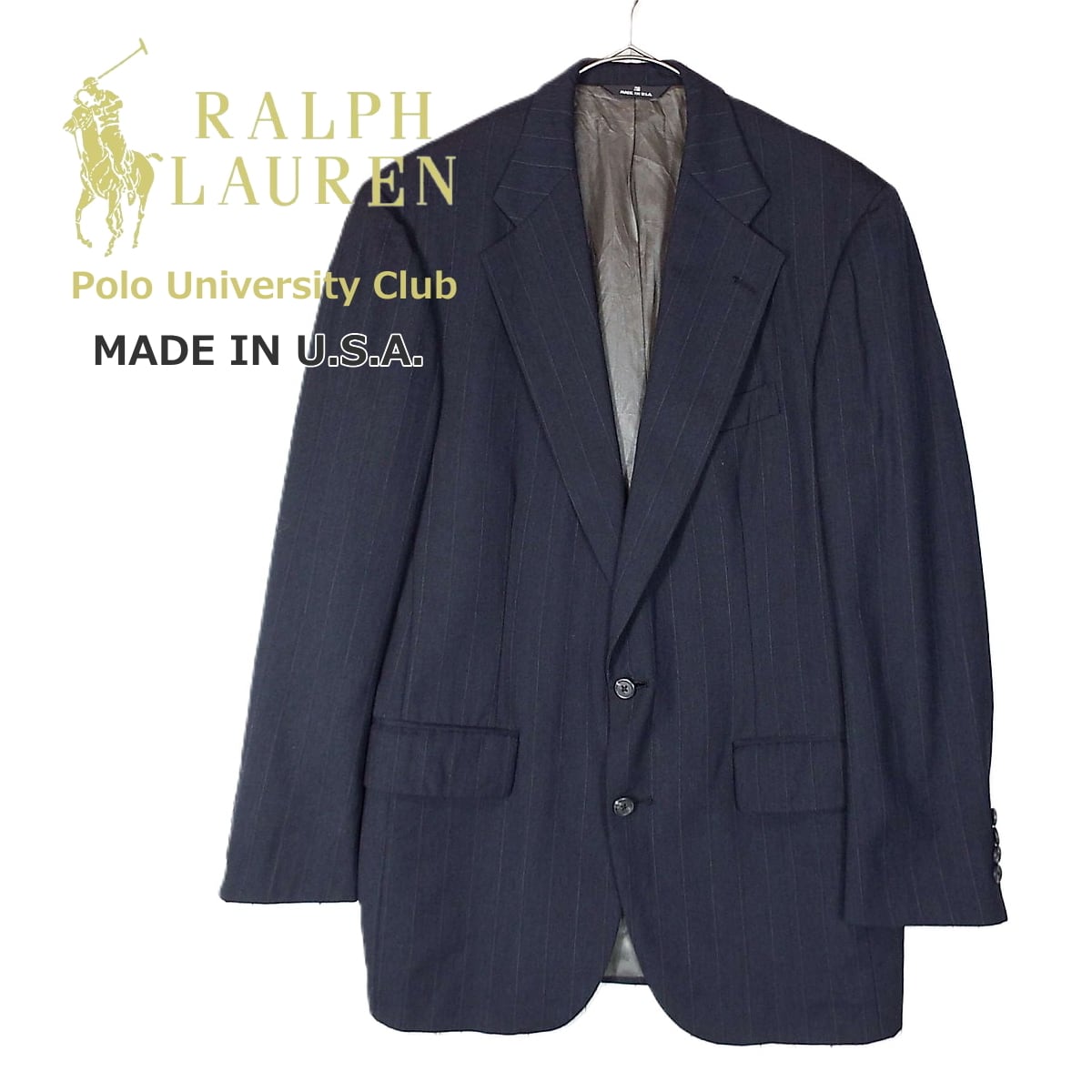 80年代 USA製 Polo University Club by Ralph Lauren ラルフローレン 2B ストライプ テーラードジャケット ダークグレーブラック Mサイズ【湘南倉庫】80's USメンズ古着 16000070