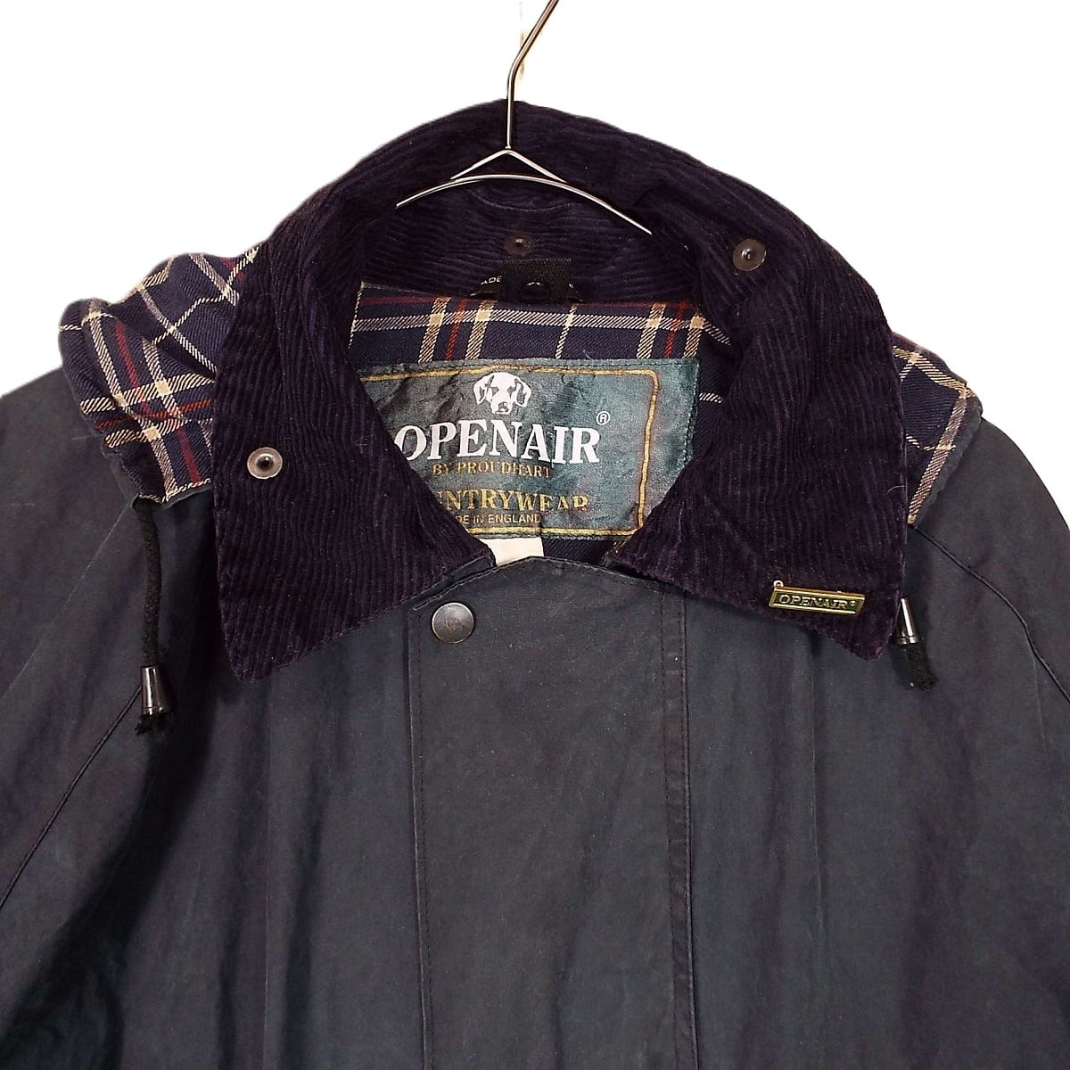 【PRICE DOWN】【ヨーロッパ古着】英国製 OPENAIR ワックスドコットン オイルドジャケット Mサイズ ネイビー 【湘南倉庫】EU古着 16000247