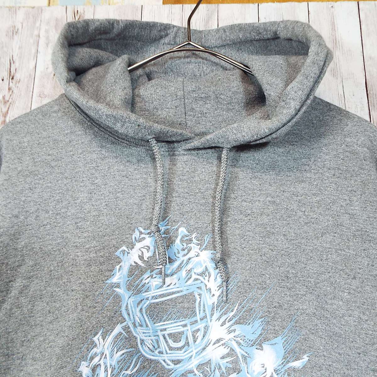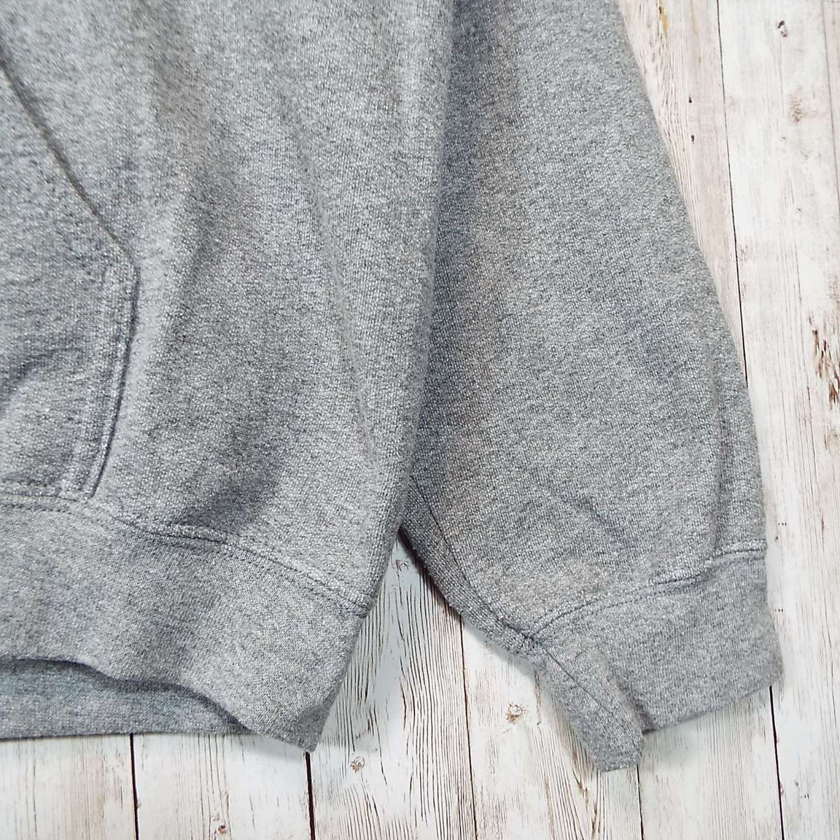 【グラフィック&ナンバリング】GILDAN ギルダン Northeast Rebel Football 背番号32 チーム 長袖フーテッド パーカー Lサイズ(肩幅 62cm)ライトグレー【湘南倉庫】USメンズ古着 ビッグサイズ 17000628