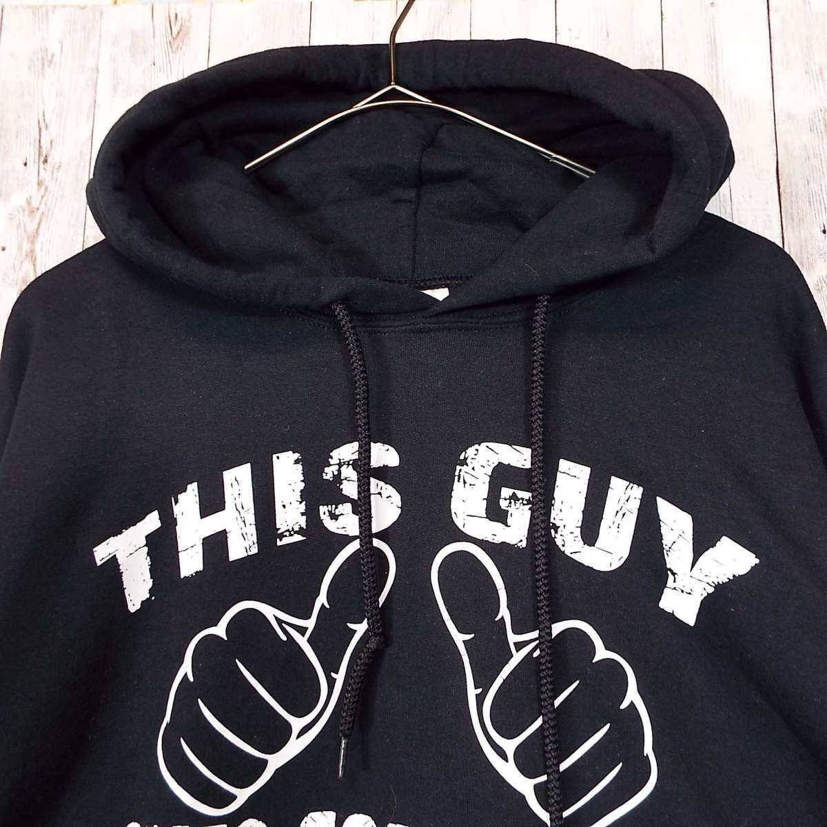 【サムズアップ】10s GILDAN ギルダン THIS GUY LOVES COPENHAGEN コペンハーゲン デザイナー 長袖フーテッド パーカー Lサイズ(肩幅 63cm)ブラック【湘南倉庫】2000年代 USメンズ古着 ビッグサイズ 17000659