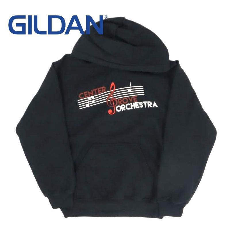 GILDAN ギルダン CENTER GROVE ORCHESTRA 長袖フーテッドパーカー ブラック黒 USメンズ古着 Sサイズ【仙台倉庫】オーケストラ 音符 楽譜