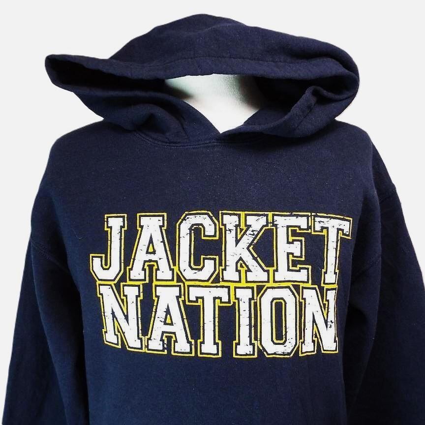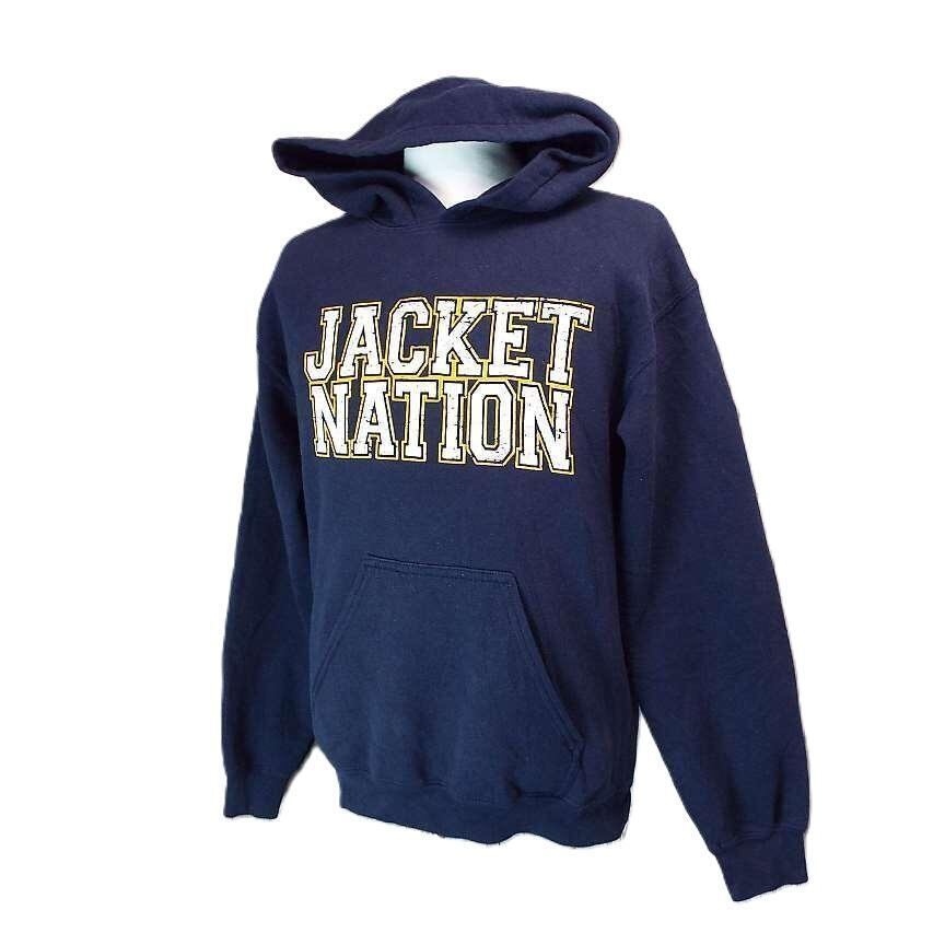 GILDAN ギルダン JACKET NATION チーム 星条旗 蜂 長袖フーテッドパーカー ネイビー紺 USメンズ古着 Sサイズ【仙台倉庫】12362172 2段ロゴ カレッジ風 アメフト