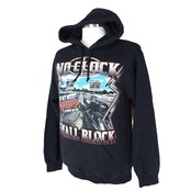GILDAN ギルダン NO CLOCK SMALL BLOCK ドラックレース アメ車 長袖フーテッドパーカー ブラック黒 USメンズ古着 Sサイズ【仙台倉庫】