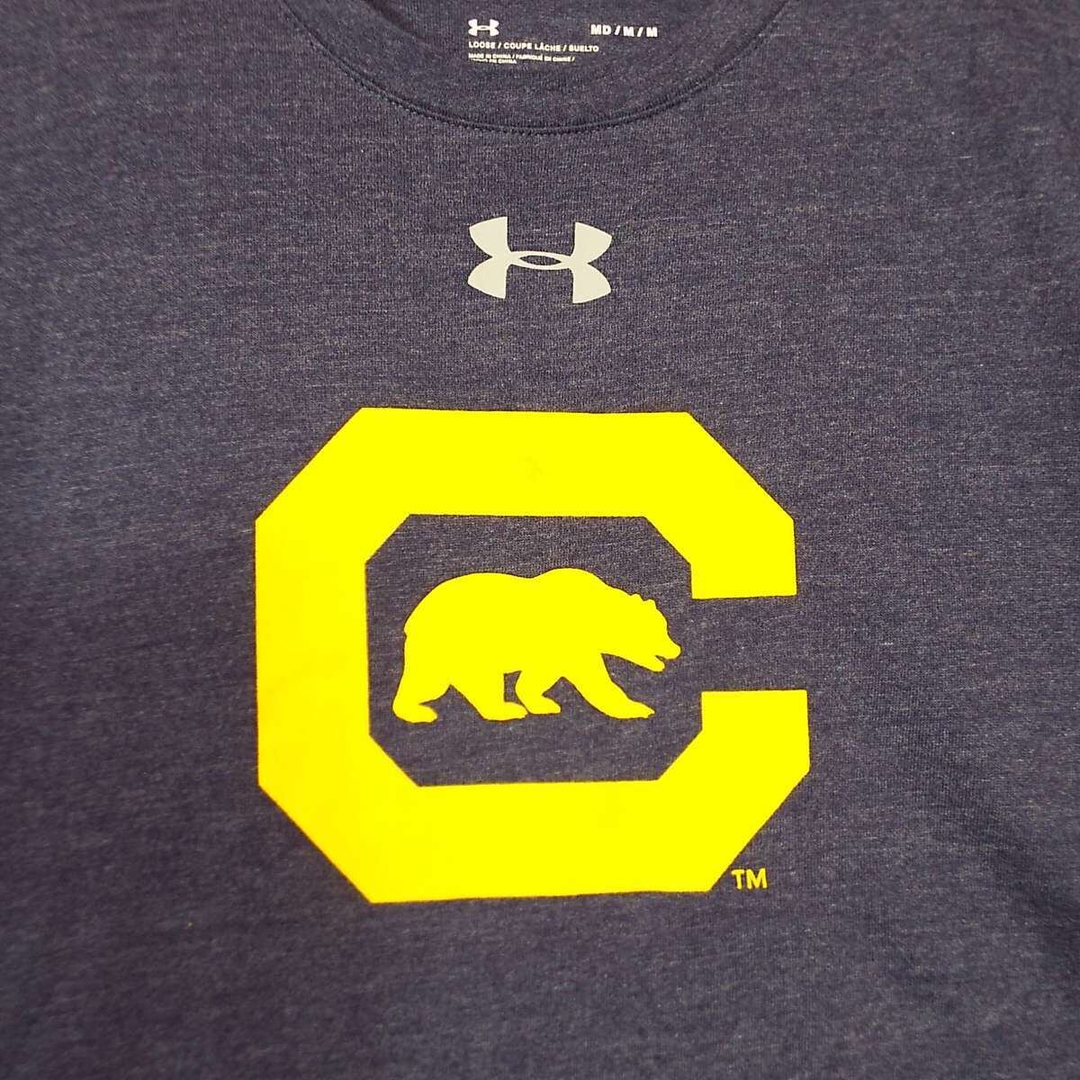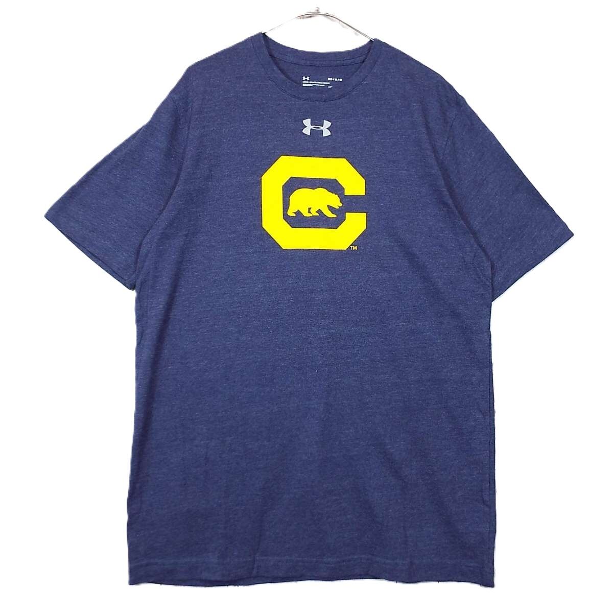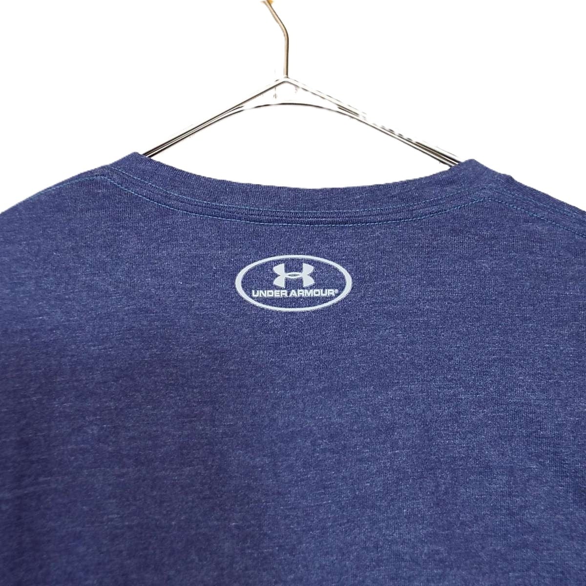 【リームロゴ】♪アンダーアーマー♪UNDER ARMOUR HEATGEAR ヒートギア ワンポイント メランジ プリント 熊 ベアー 半袖Tシャツ M/MDサイズ【肩幅46cm】霜降りネイビーパープル【湘南倉庫】USメンズ古着 "4912345000385" ビッグサイズ T5
