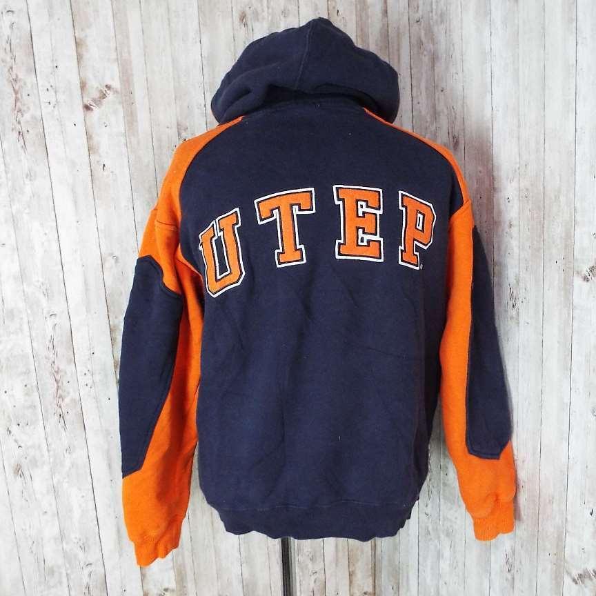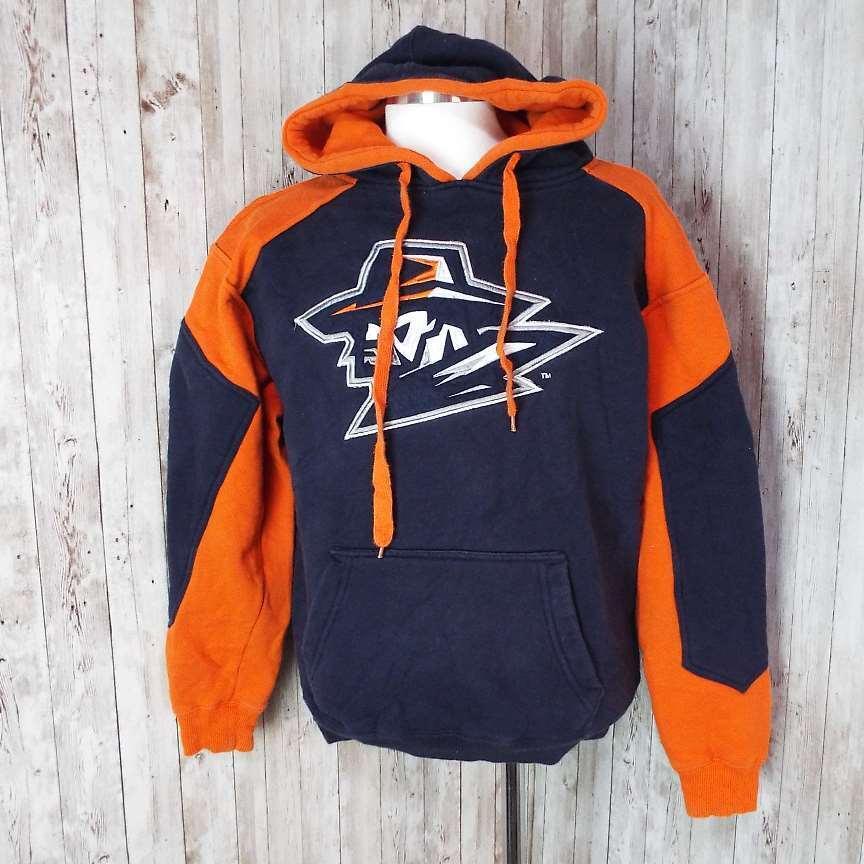 【肉厚&ビッグロゴ】COLOSSEUM ATHLETICS アスレチックス バイカラー 長袖スウェット パーカー Sサイズ(肩幅48cm)オレンジ・ネイビー【仙台倉庫】USメンズ古着 "12363636" 防寒