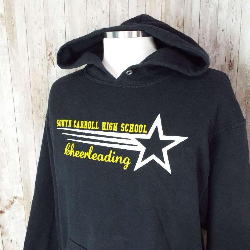 90年代ヴィンテージ Mサイズ|JERZEES ジャージーズ SOUTH CARROLL HIGH SCHOOL CHEERLEADING フーテッドパーカー ブラック黒【仙台倉庫】US古着,"12360772"