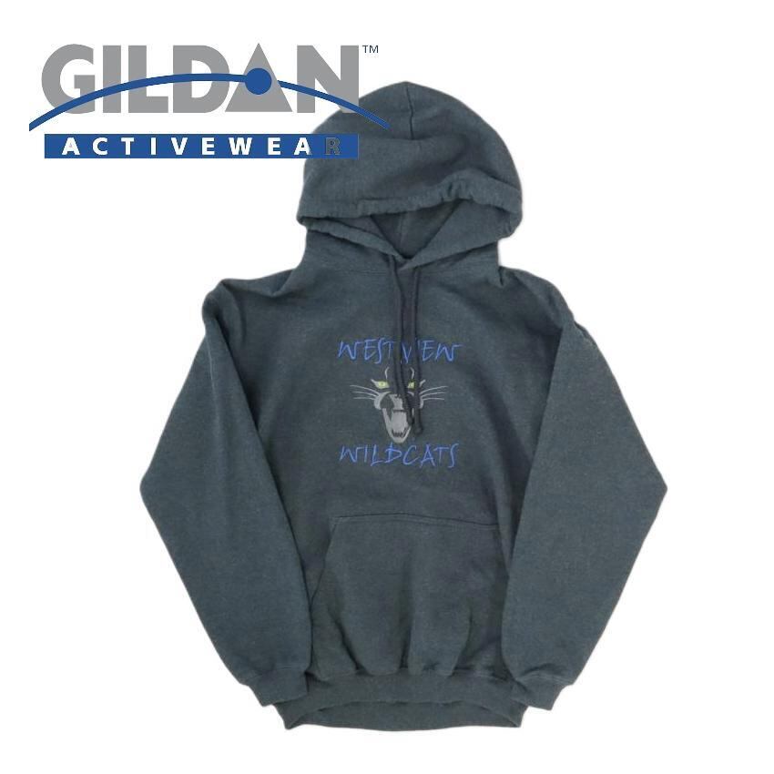 00's GILDAN WESTVIEW WILDCAT 刺繍ロゴ ネイティブ 肉厚 長袖フーテッドパーカー グレー灰 US:Mサイズ【仙台倉庫】古着 ,"12364305"