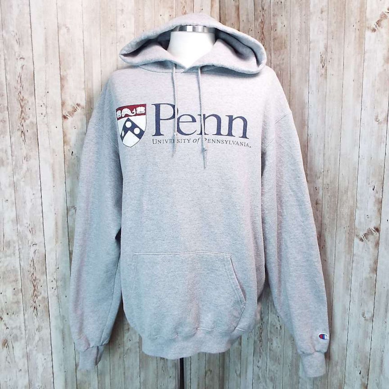 【SOLD OUT】Champion University of PENNSYLVANIA ペンシルバニア大学 カレッジ袖ロゴ 長袖プルオーバー カラーパーカー ライトグレー USサイズ:L【仙台倉庫】,"12363155"
