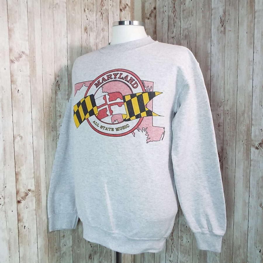 Sサイズ【Maryland】メリーランド アメリカ デザイン 50/50 長袖トレーナー|ライトグレー|日本:Mサイズ程度【湘南倉庫】USメンズ古着used,"12364152"