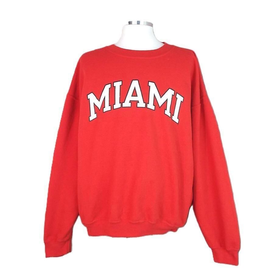 【肩幅53cm】◎00年代&カレッジロゴ◎GILDAN ギルダン MAIAMI collegeマイアミ大学 アーチ 1段 長袖スウェット トレーナー Lサイズ レッド 【仙台倉庫】USメンズ古着 "4912345000545"