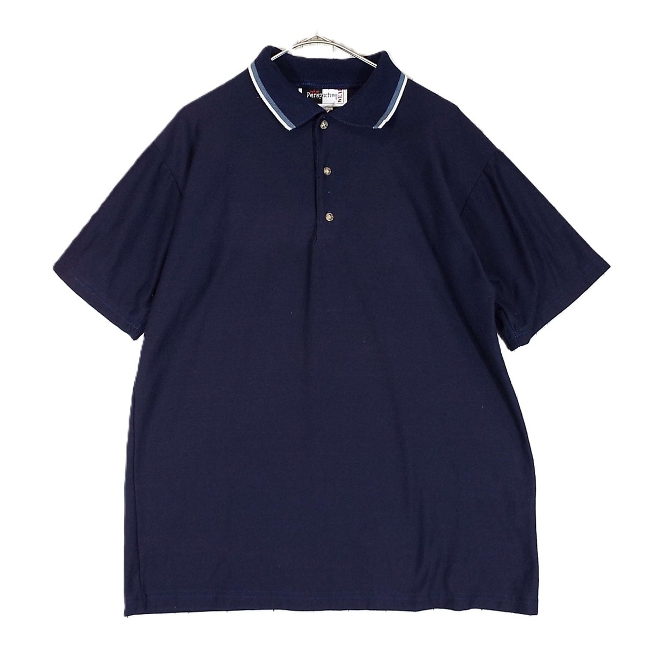USA製 into perspective 3B コットン100% 半袖ポロシャツ Sサイズ ネイビー【 湘南倉庫】オールドUS古着 "12341436"