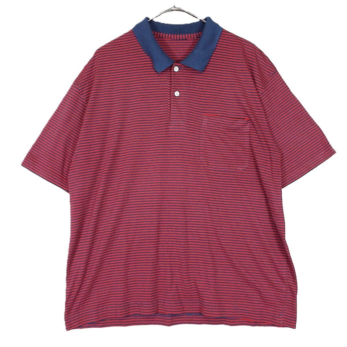 UN KNOWN ボーダー柄 半袖ポロシャツ Mサイズ ワインレッド・ネイビー【湘南倉庫】USメンズ古着 "12341443"