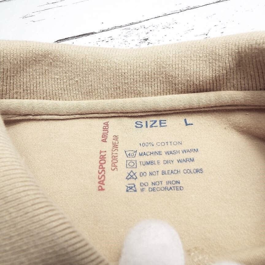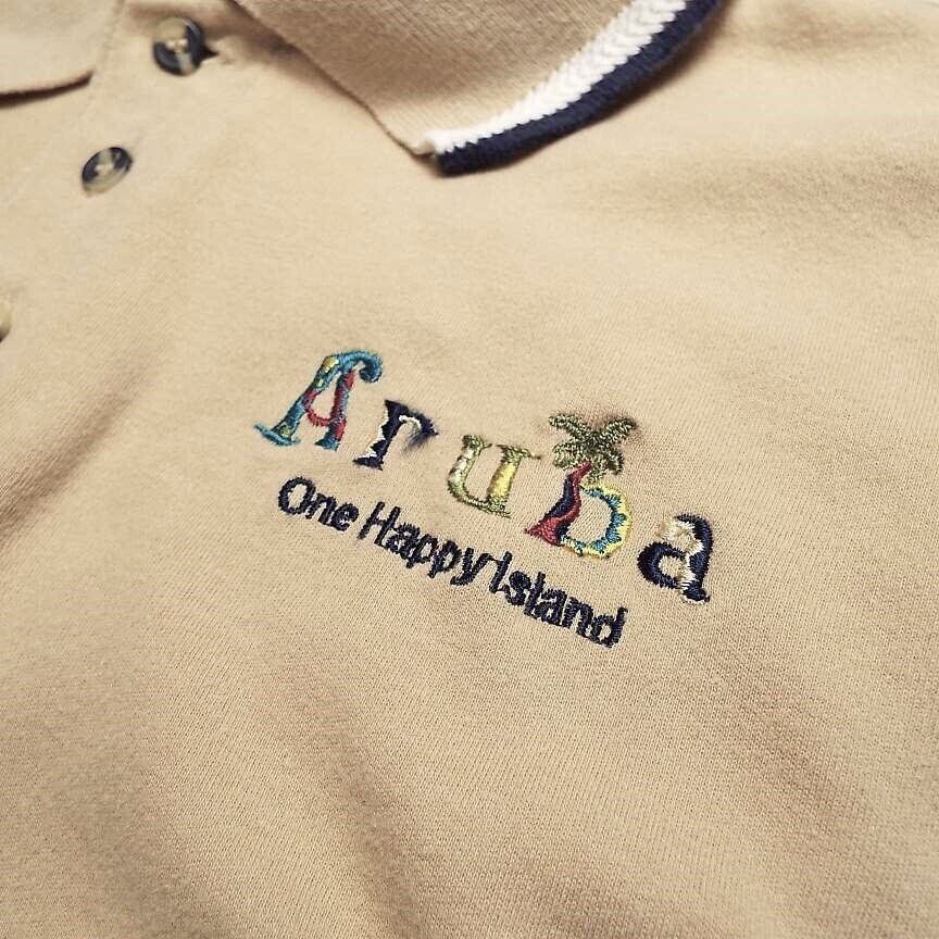 【リゾート】PASSPORT ARUBA aruba one happy island 刺繍ロゴ 3B 半袖ポロシャツ Lサイズ コットン100% ベージュブラウン【湘南倉庫】USメンズ古着 12341474