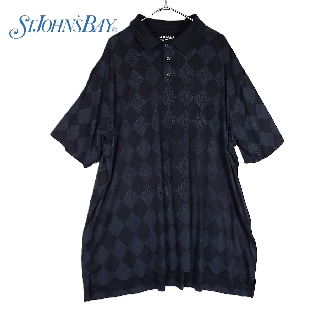 【大きいサイズ】バングラデシュ製 ST.JOHN'S BAY(セントジョンズベイ)QUICK-DRI(速乾素材)半袖 ポロシャツ 2XLT ダイヤ柄 ブラック系【湘南倉庫】USメンズ古着 US2,"12341900-1-16" ゆるだぼ