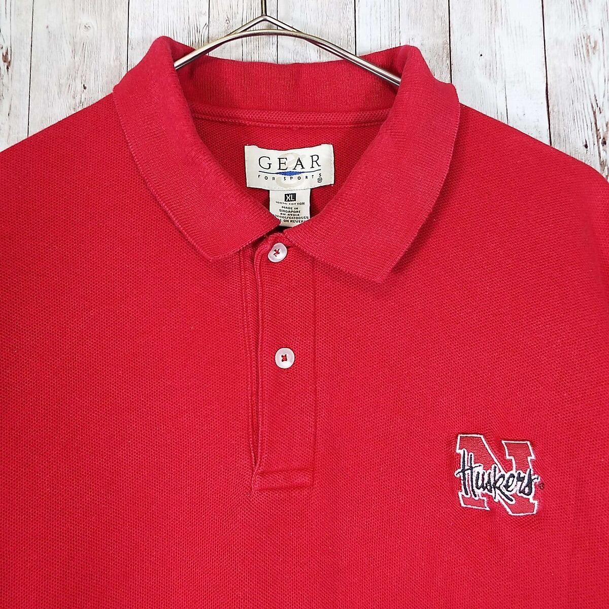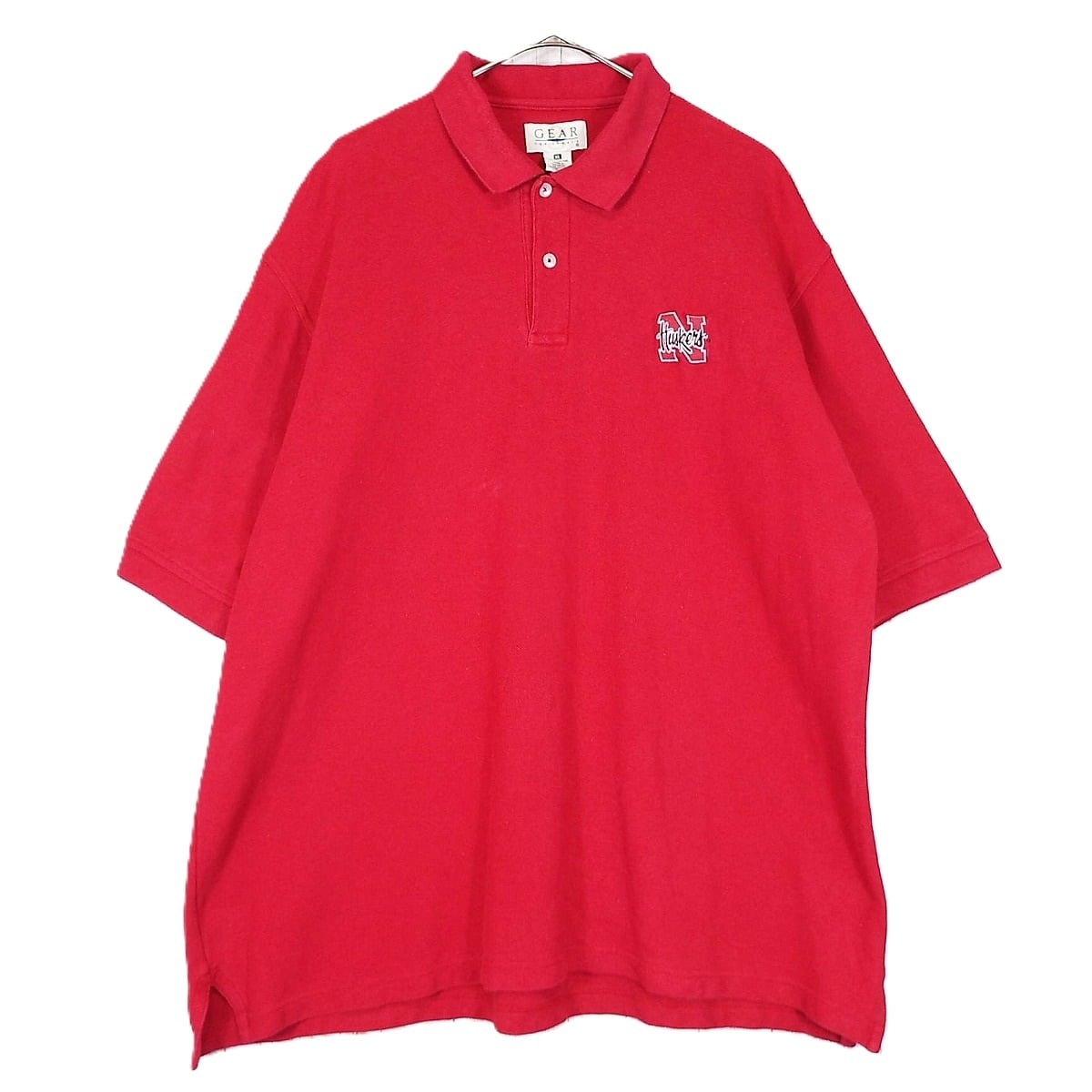 シンガポール製 University of Nebraska Athletics ネブラスカ大学 チーム 刺繍ロゴ 鹿の子 半袖ポロシャツ コットン100% XLサイズ【湘南倉庫】USメンズ古着 カレッジロゴ ,"12341245"