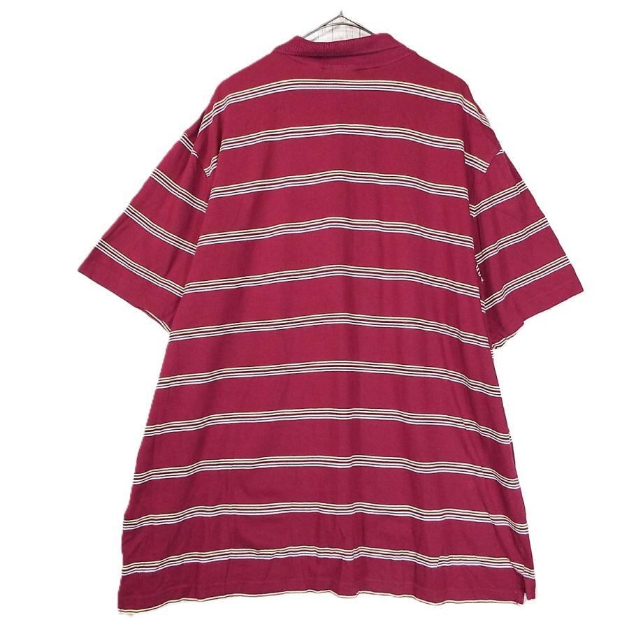 【大きいサイズ】インドネシア製 john ashford ストライプ柄 コットン混 半袖ポロシャツ XXL(2XL)ワインレッド【湘南倉庫】USメンズ古着 ビッグサイズ,"12341917-16"