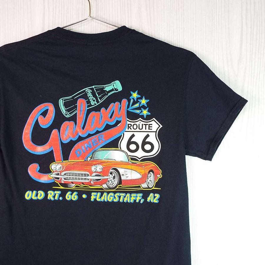 【ROUTE66】10s GILDAN ギルダン ルート66 GALAXY DINER アメ車 ビッグロゴ 両面ラバー カラープリント 半袖Tシャツ Sサイズ(肩幅44cm)ブラック 【湘南倉庫】USメンズブランドフルギ 2010年代