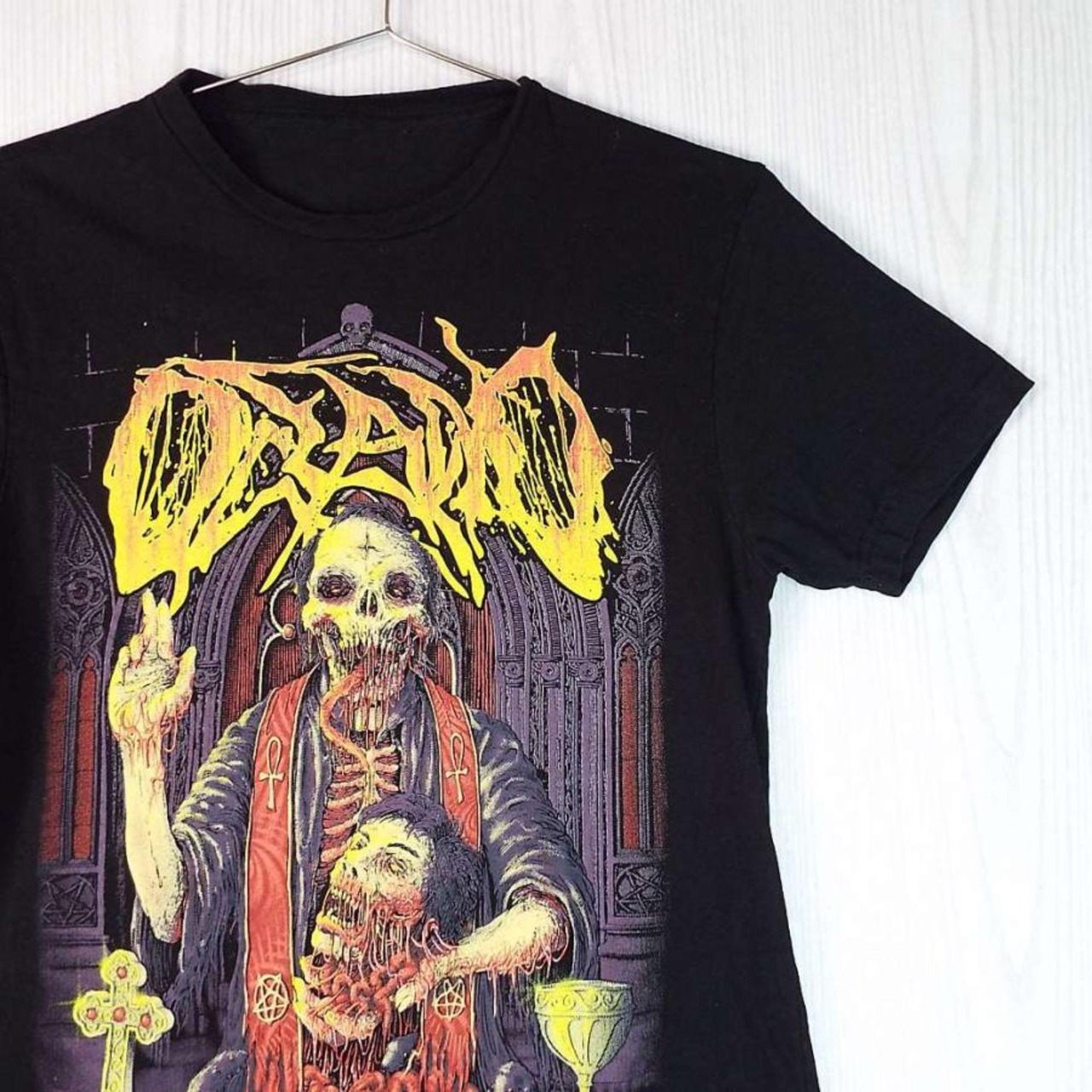 【肩幅44cm】【バンドTシャツ】OCEANO This Is A Mandatory Sacrifice ガイコツ 十字架 デスメタル プリント 半袖Tシャツ Mサイズ ブラック 【湘南倉庫】USA古着 T3 アーティスト