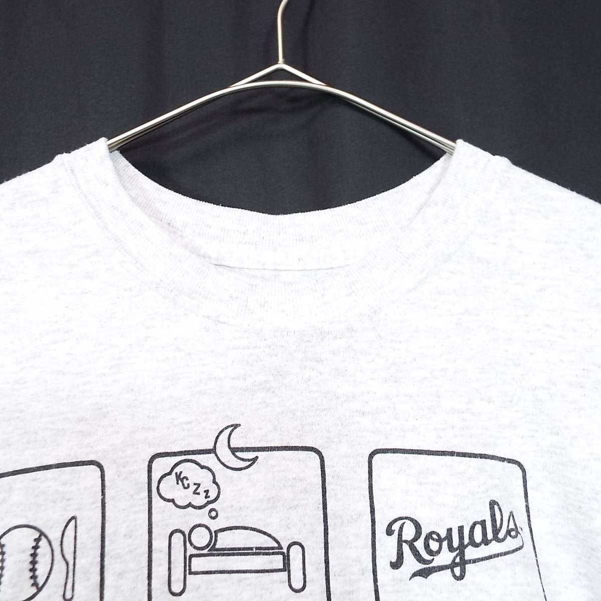 【MLBロイヤルズ】GILDAN ギルダン Kansas City Royals カンサスシティ・ロイヤルズ 野球 ベースボール メランジ 両面プリント 半袖Tシャツ Mサイズ(肩幅49cm)霜降りライトグレー コットンポリエステル(50/50)【湘南倉庫】USメンズ古着 DRYBLEND