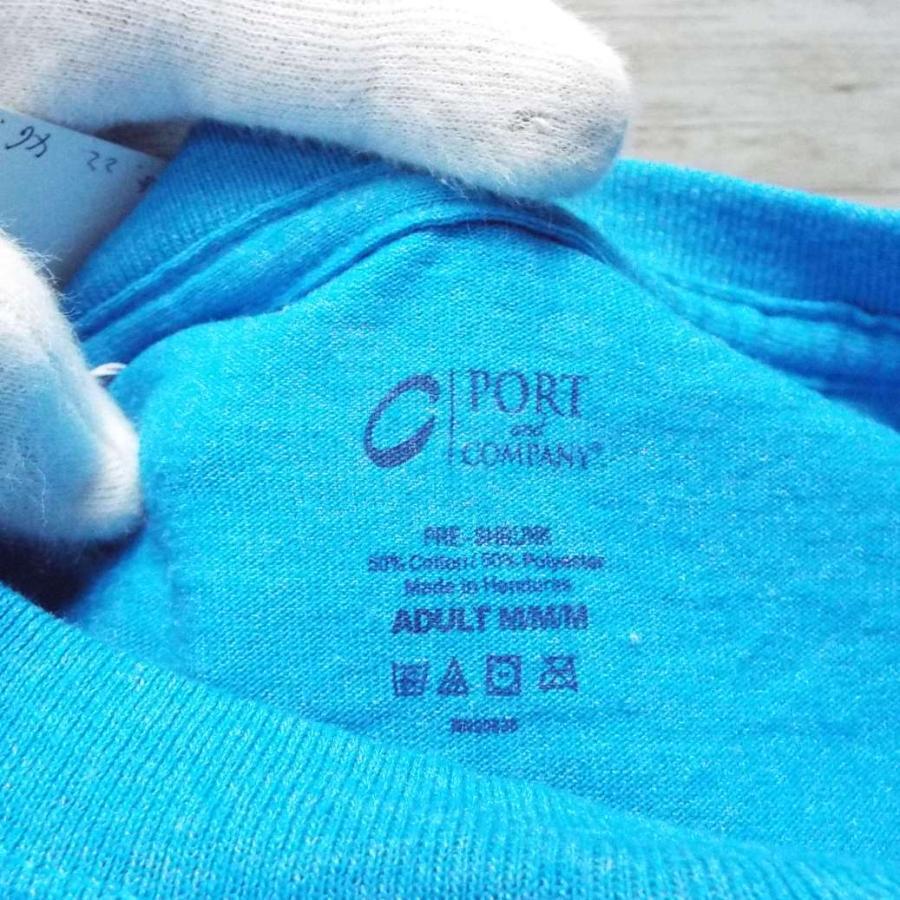 ◎肩幅45cm◎【記念Tシャツ】PORT AND COMPANY ポート・アンド・カンパニー OKLAHOMA DISCIPLES 2014 ビッグロゴ 道しるべ オクラホマ 両面プリント 半袖Tシャツ Mサイズ ブルー コットンポリエステル(50/50)【湘南倉庫】USメンズ古着0"