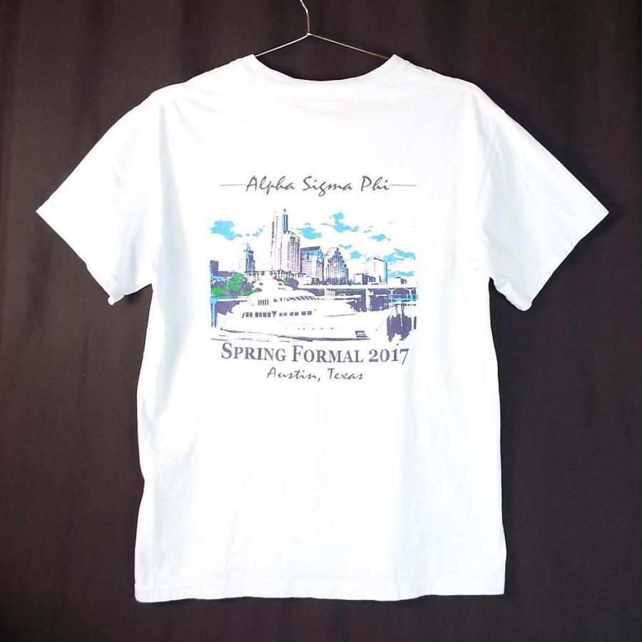 ◎肩幅49cm◎【イラストデザイン】COMFORT COLORS コンフォートカラーズ TEXAS SPRING FORMAL 2017 胸ポケット 船 クルーザー ハーバー 両面プリント 半袖Tシャツ Mサイズ ライトブルー コットン100% 【湘南倉庫】USメンズ古着 T5