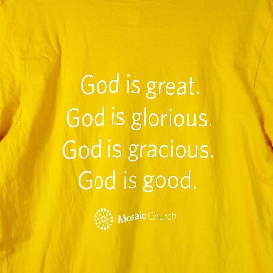◎肩幅40.5cm◎【ビビットカラー】CANVAS キャンバス Mosaic Kids メッセージ 文字 教会 企業 ロゴ 両面プリント 半袖Tシャツ イエローオレンジ コットン100%【湘南倉庫】USA古着 T5