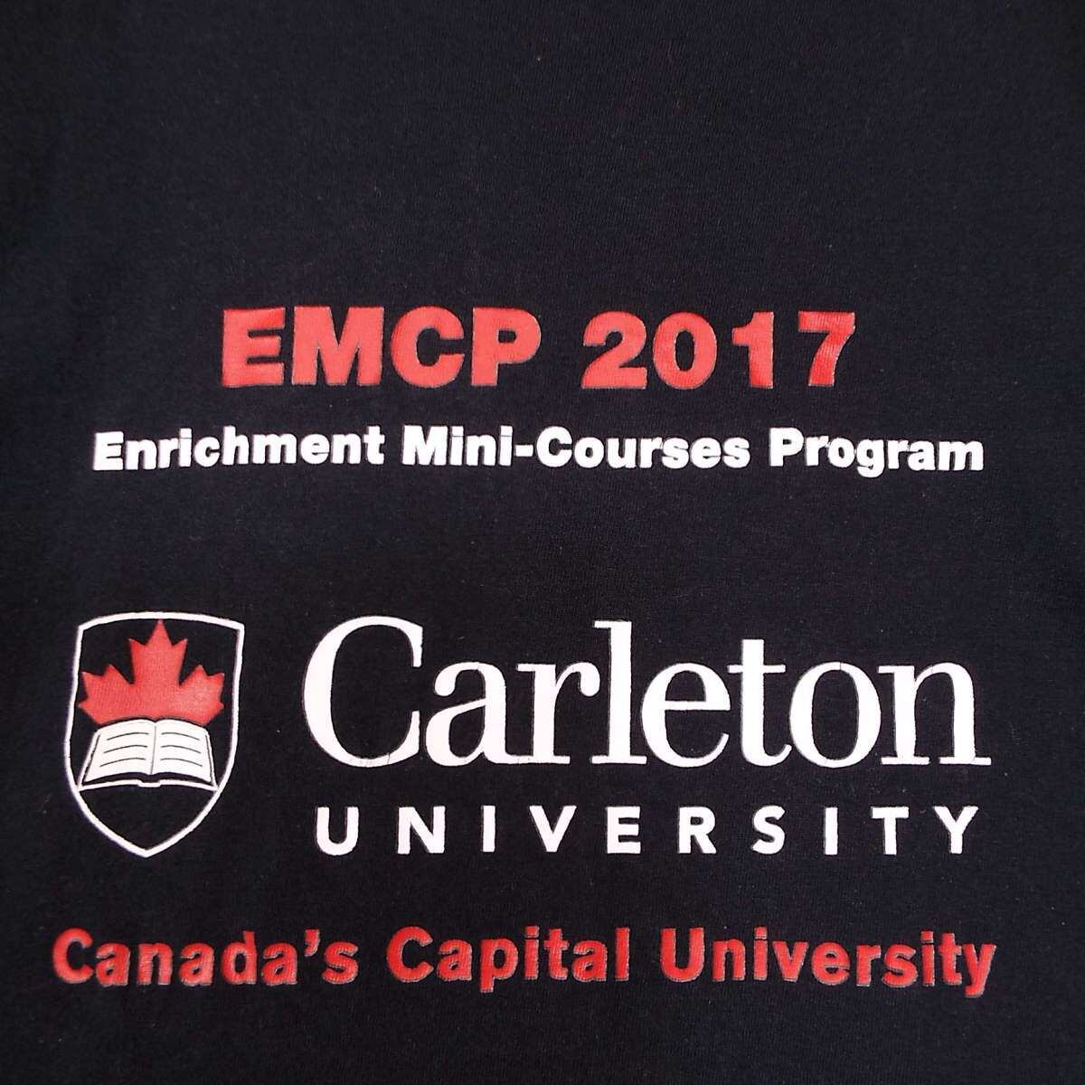 【カレッジロゴ】10s メキシコ製 M&O Gold Carleton University EMCP 2017 カナダ・オタワ カールトン大学 レタード 英文字 5段ロゴ プリント 半袖Tシャツ Mサイズ◎肩幅46cm◎ ブラック コットン100%【湘南倉庫】2010年代 USA古着 T5