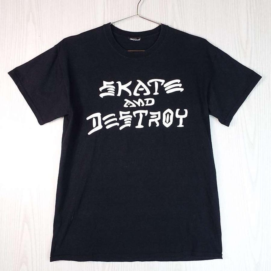 ◎肩幅49.5cm◎【THRASHER スラッシャー】 Skate And Destroy ひび割れ ラバープリント ロゴ クルーネック 半袖Tシャツ Mサイズ ブラック 【湘南倉庫】USA古着 T3
